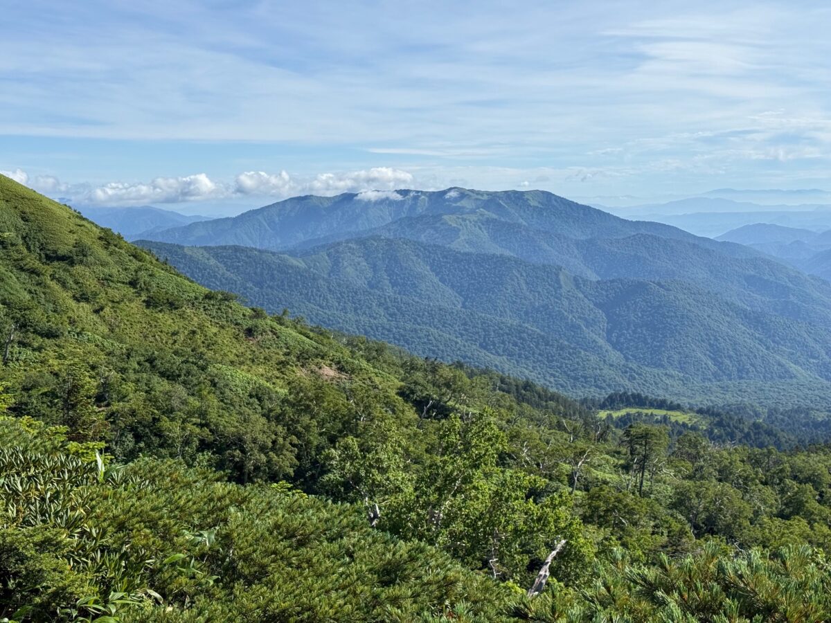 俎嵓からは、360度の眺望が得られます。先ほど登ってきたミノブチ岳も望めました。ここからは御池へ下山しました。