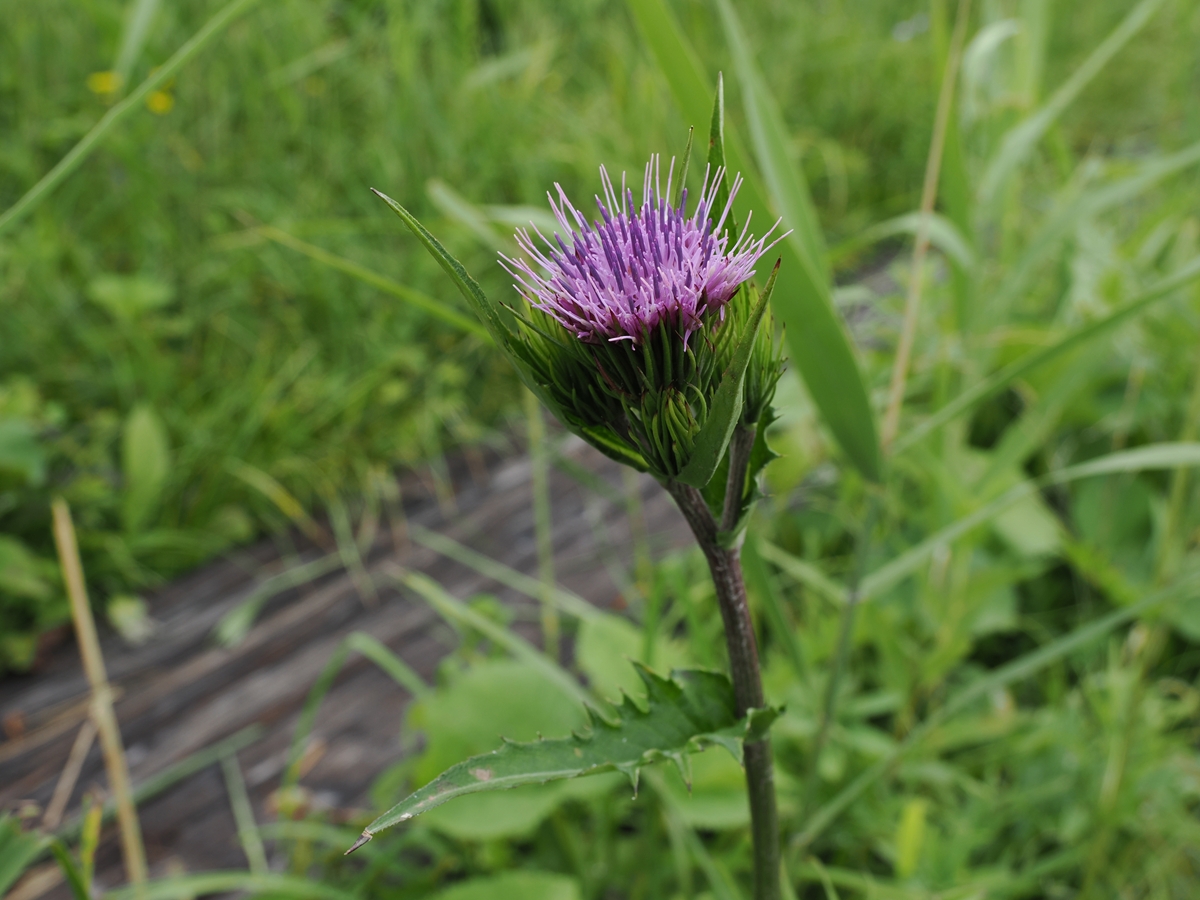 先日のブログにもありましたが、ピークを過ぎたノアザミに代わり、オゼヌマアザミが増えてきました。葉には棘があり、刺さると痛いのでそばを通る時は気をつけましょう。