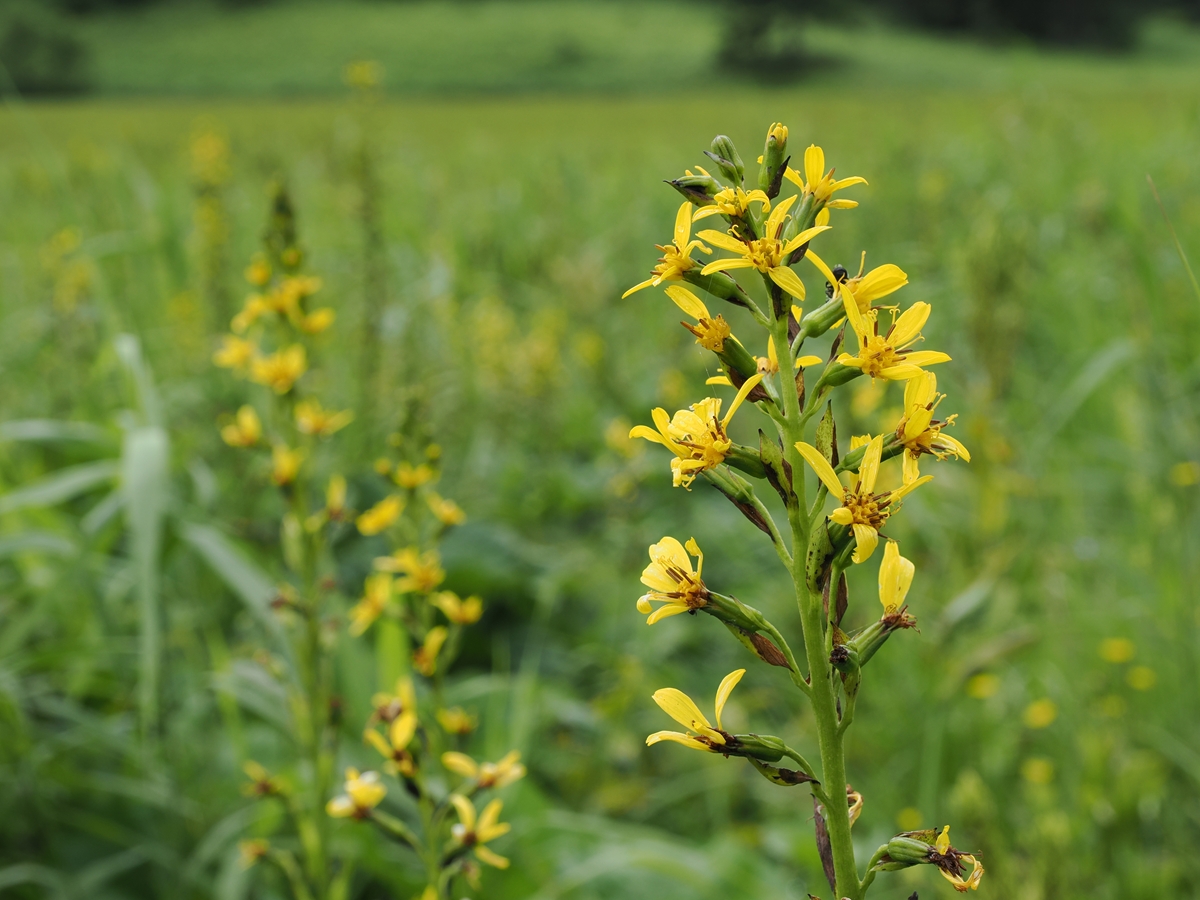 湿原で黄色く目立つのはこのオタカラコウです。基本的に水路に沿って増える花ですが、木道の間などでも見られる場所があります。