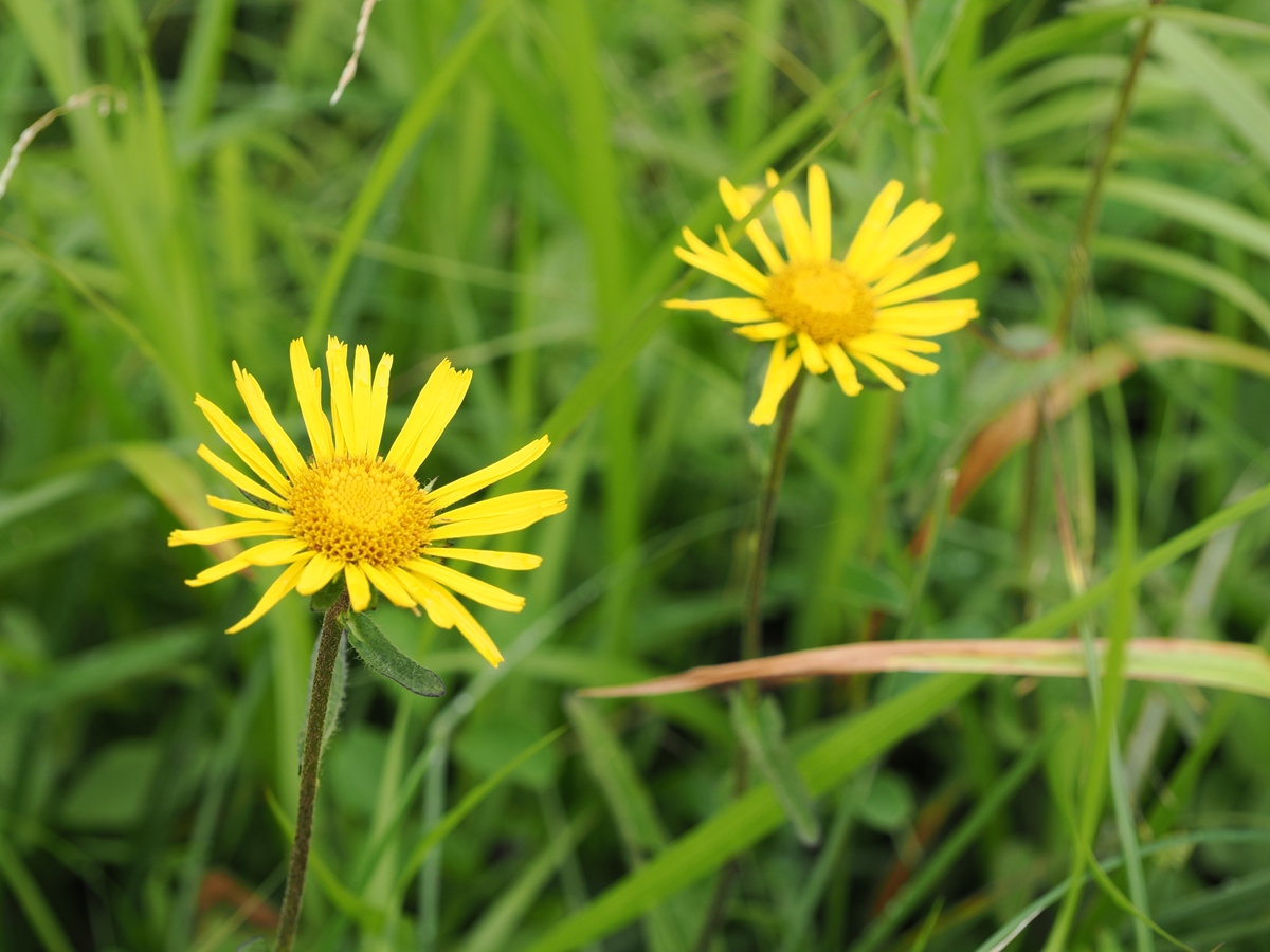 背が高く目立つ黄色は上のオタカラコウですが、足元からもまた鮮やかな黄色が目に飛び込んできます。