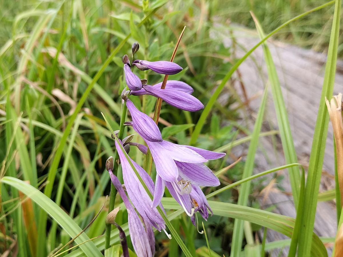 いろいろな花を見つけることができますが、いま大江湿原で花数が多いのは、このコバギボウシとミズギクかと思います。