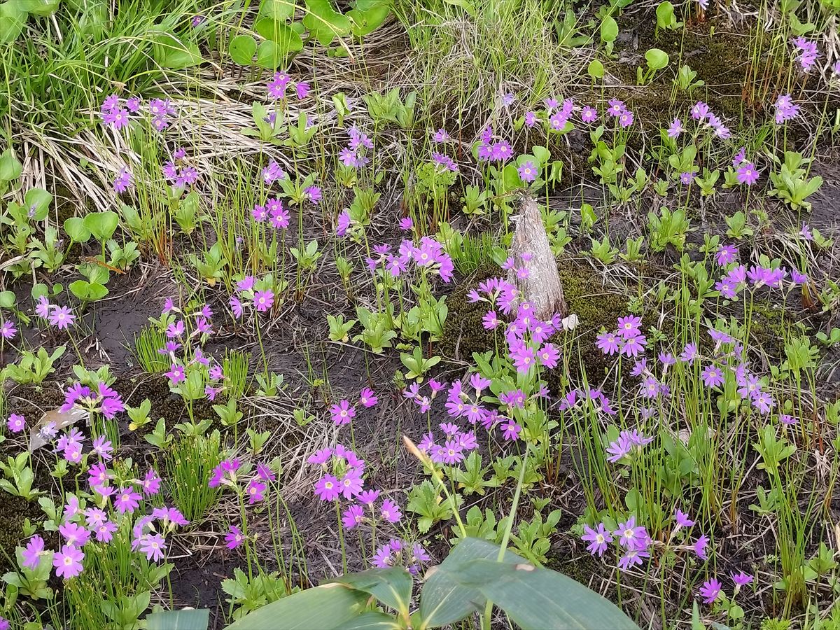 会津駒ヶ岳を代表するお花、ハクサンコザクラです。たくさん咲いています。
