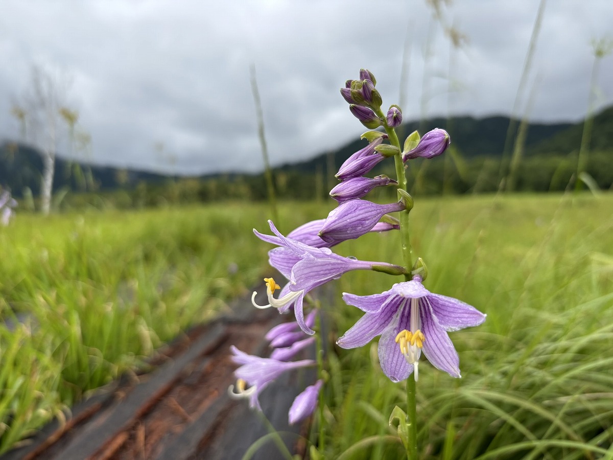 尾瀬ヶ原では、サワギキョウの花がきれいに咲いています。すっと伸びた茎、濃い青紫色の花をつけた姿に、気品を感じます。つぼみも多く見られます。