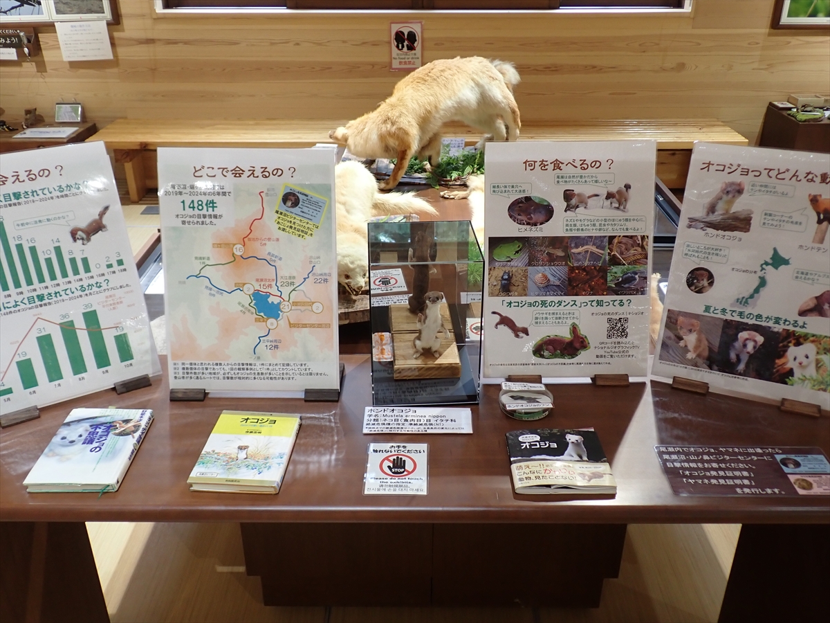 オコジョの展示も充実しています。実際の剥製を中心にオコジョの説明、尾瀬沼周辺の目撃情報など、オコジョに会いたい方は必見です。