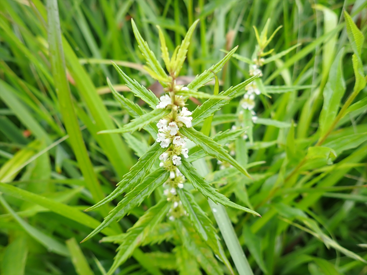 大江湿原にひっそりと咲くこのお花は、ヒメシロネといいます。葉腋上部に白い小さなお花をつけ、背も低いためあまり目立ちませんが、お花をよく見るととても可憐です。