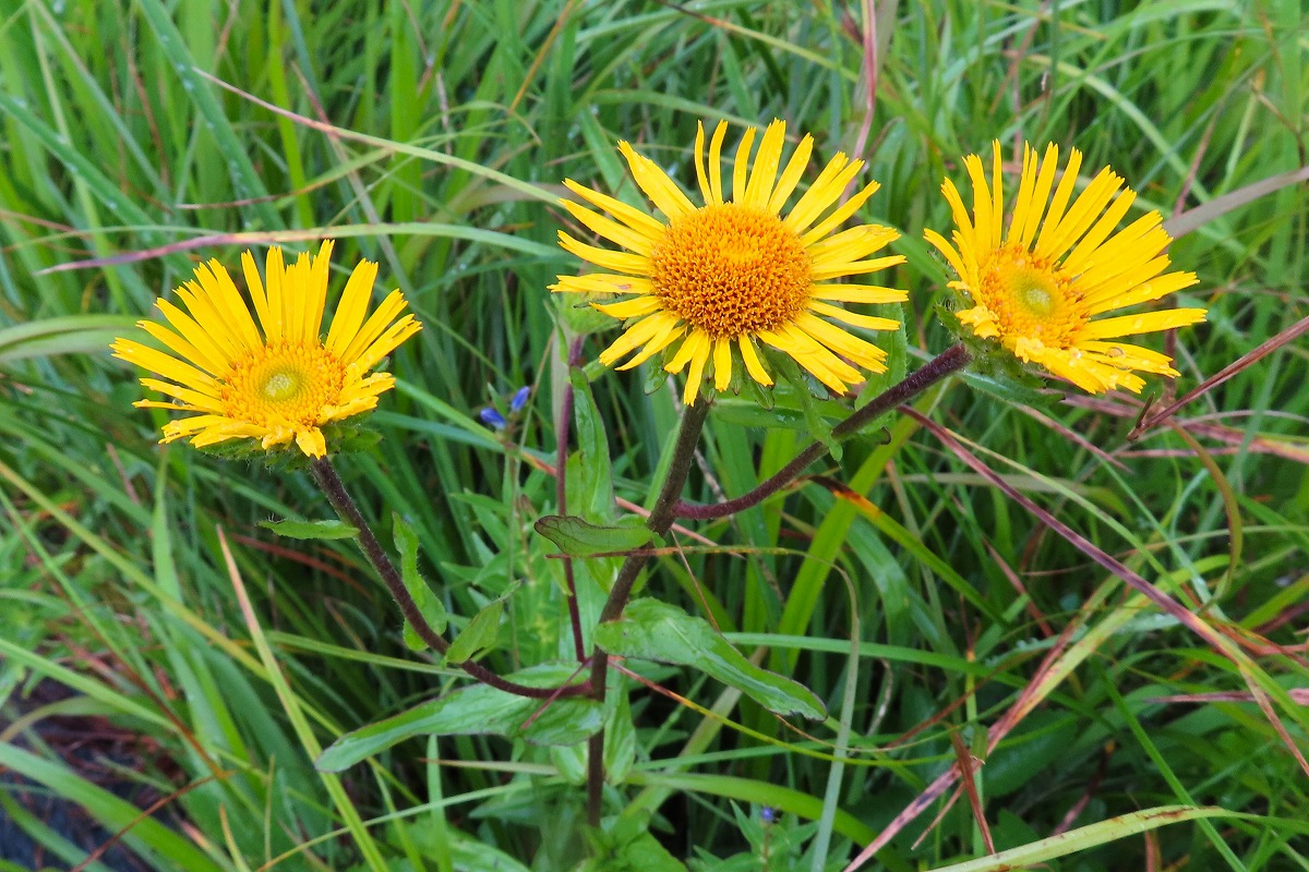 ミズギクは、通常1つの茎に1つの花を咲かせることが多いですが、こちらのミズギクは3つの花を咲かせていました。