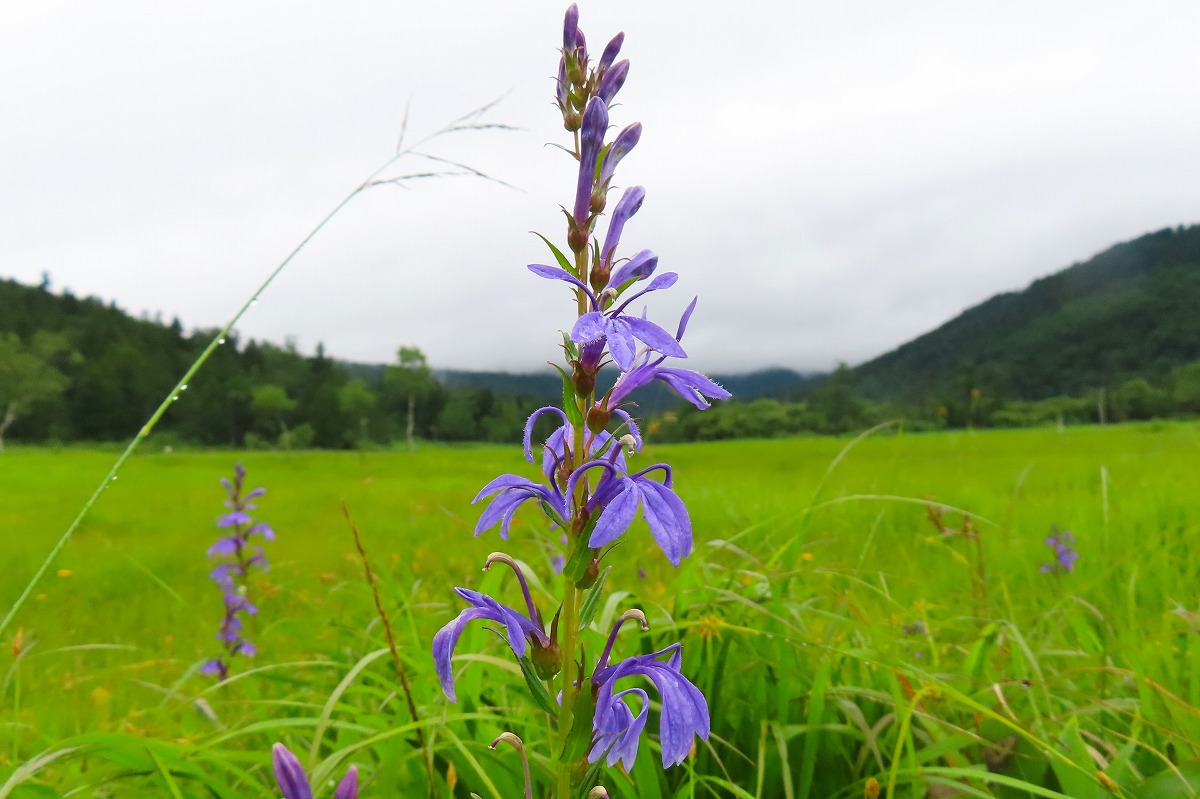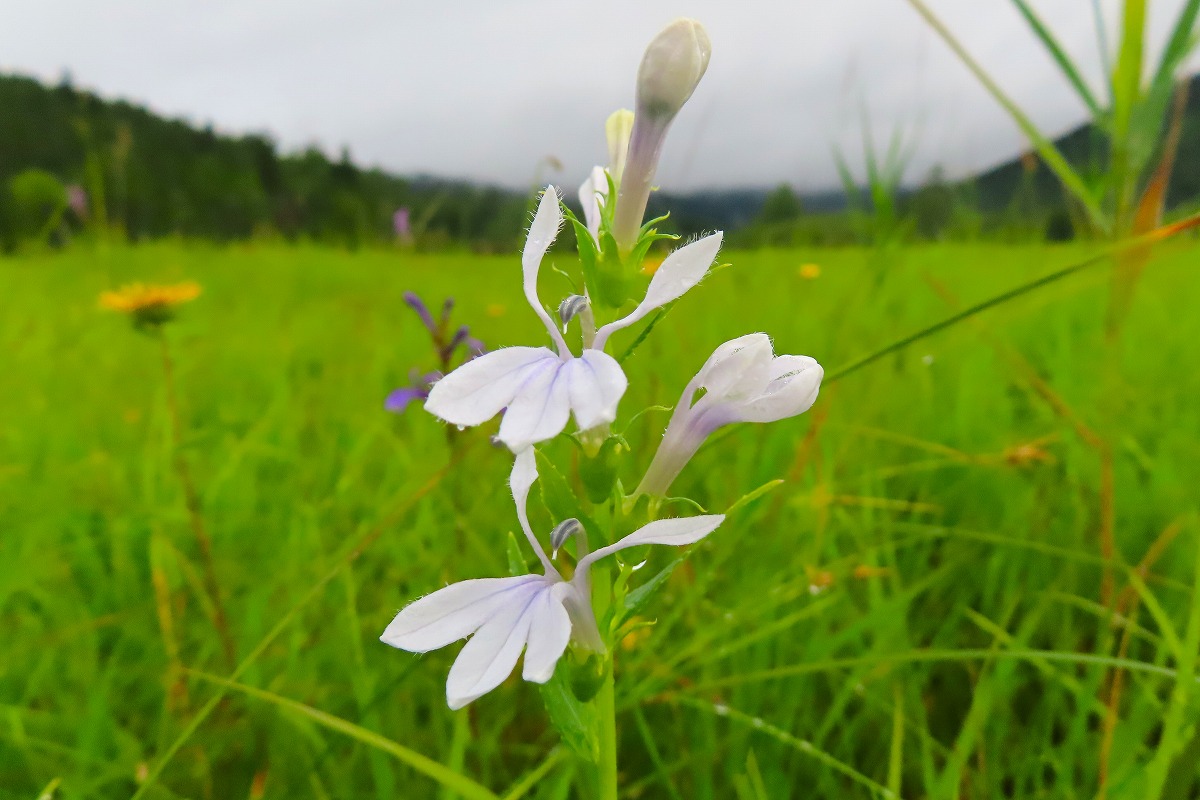 晩夏の尾瀬を青紫色に彩るサワギキョウですが、研究見本園内に白い花が咲いているのを見つけましたよ。