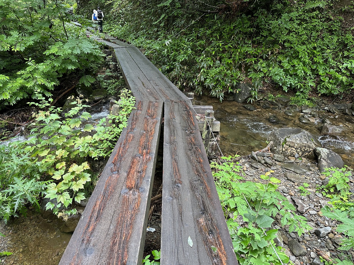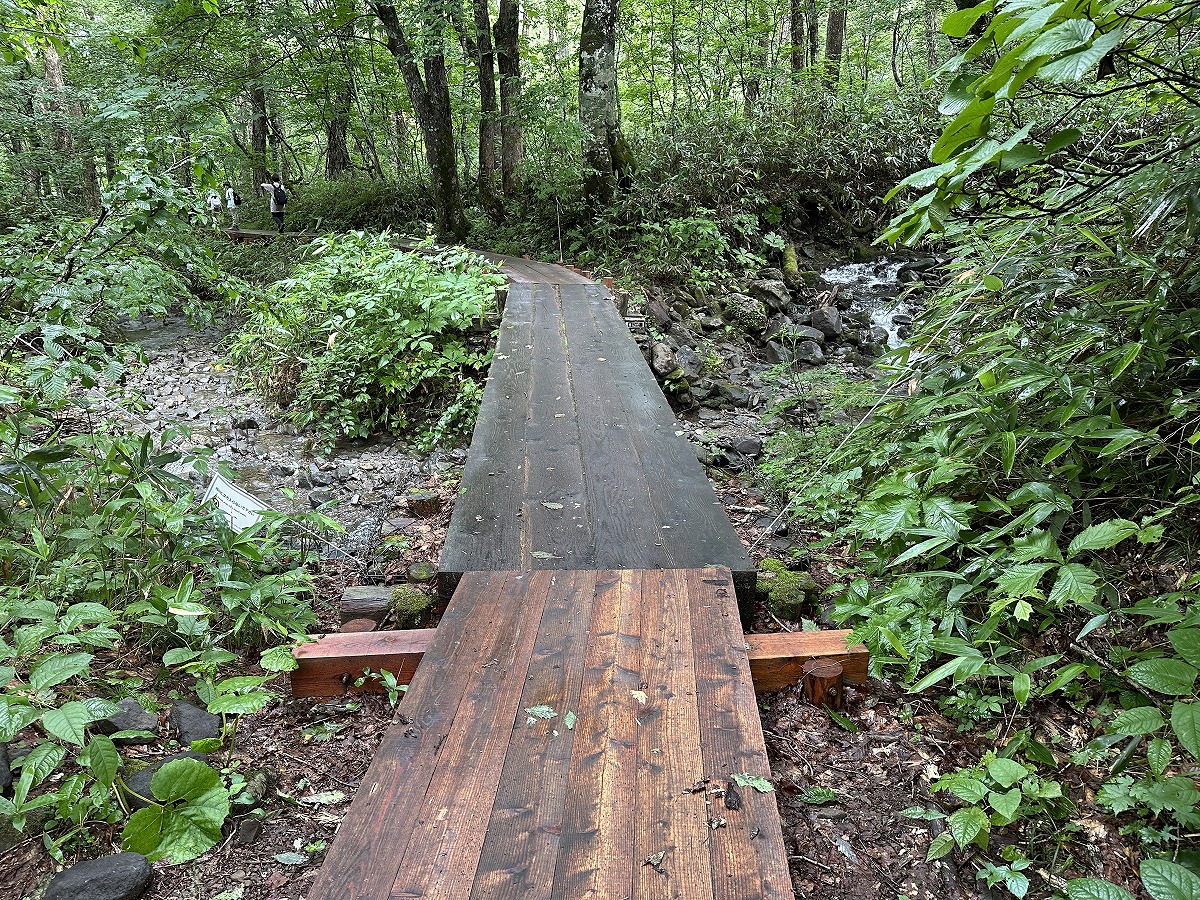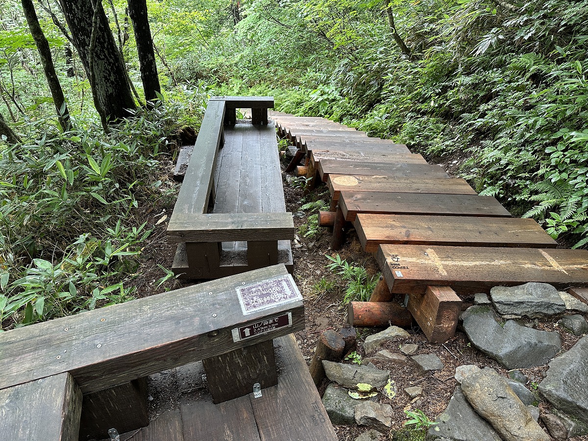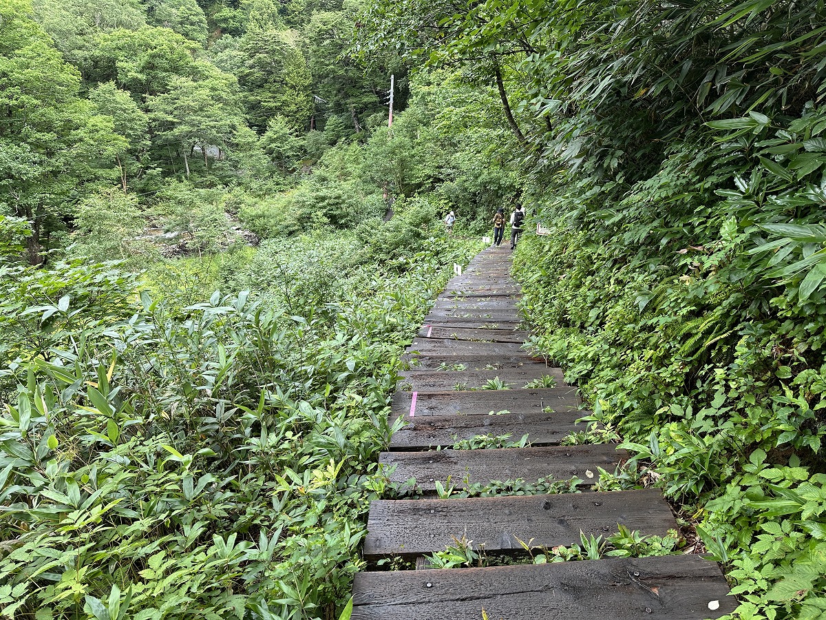 木道には色んなパターンがあり、階段やゴムの滑り止めの付いた木道等、登山者の安全のため工夫がされていますが、老朽化や損傷している箇所もありますので注意してお進みください。
