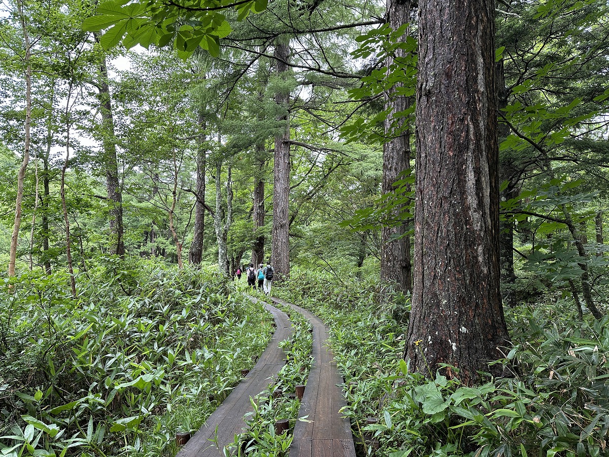 本日は、初めて尾瀬に来られる方に、鳩待峠から尾瀬ヶ原の入口である山ノ鼻までご案内いたします。