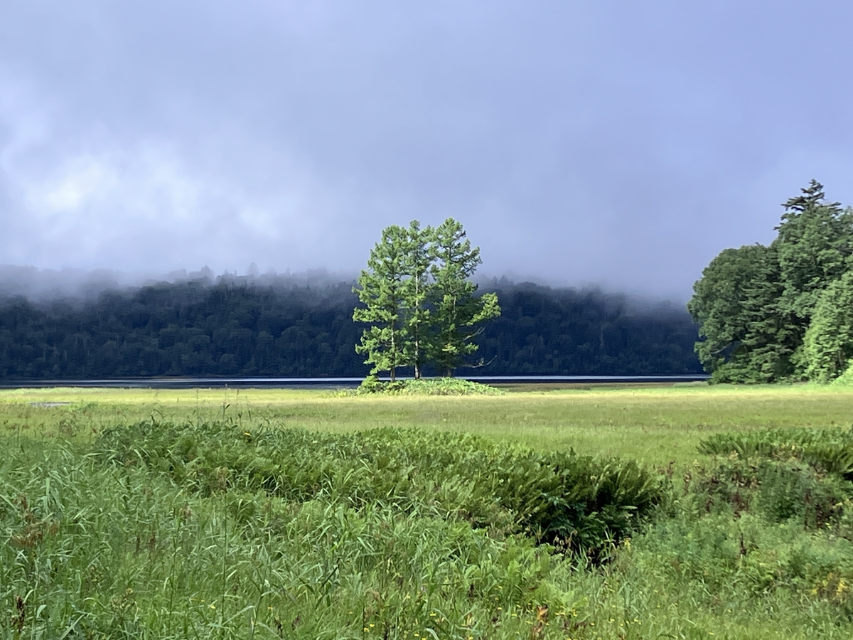 今日は曇り空ですが、時折陽が射すと湿原に光と影ができて緑が輝いて見えます。夏休みで、ご家族連れのお客様が多く、小さなお子さんの元気な声が聞こえてきます。