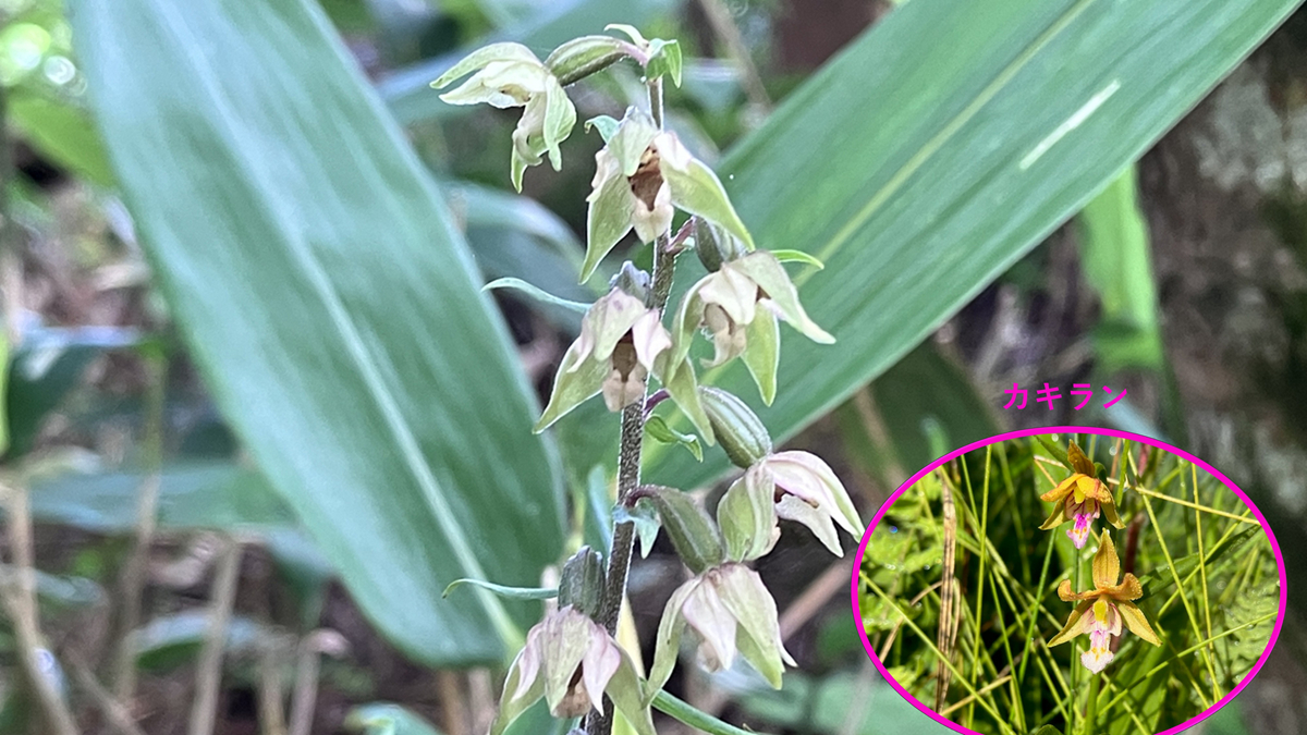 緑色なのでなかなか見つけにくい花ですが、よく見るとカキランと同じ形をしています。湿原から出てすぐの、公衆トイレへの道沿いにあります。
