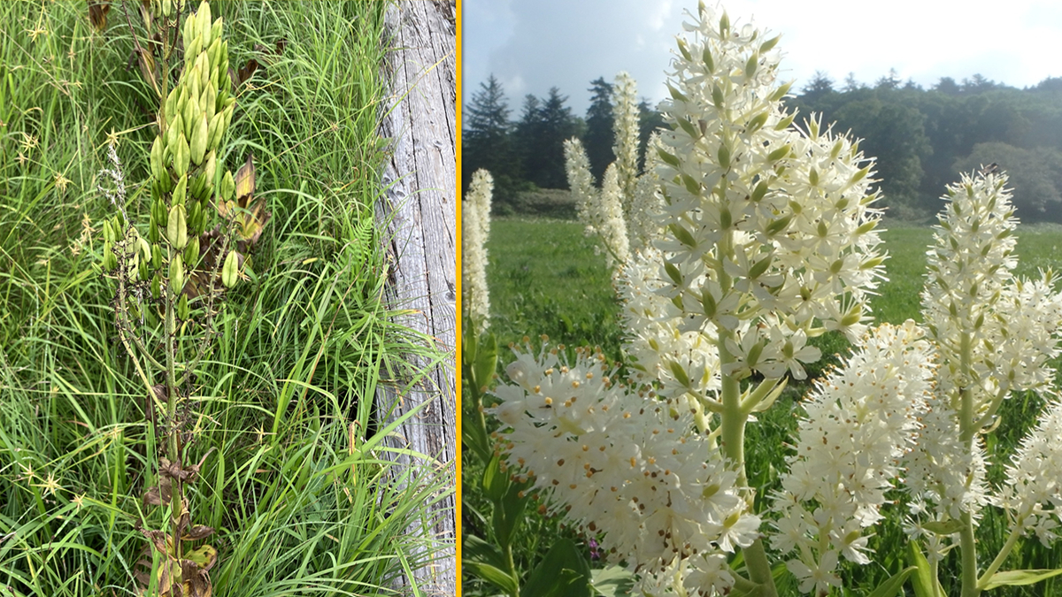 下の方はまだ花ですが、上の方は実になってきています。花に比べてずいぶん大きくなる実にびっくりですね。タカネアオヤギソウの実とコバイケイソウの実は、よく似ています。同じシュロソウ属だからですね。