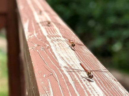 トンボたちもビジターセンターの手すりに行儀よく整列していました。
