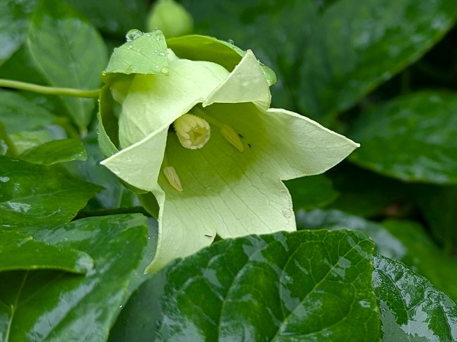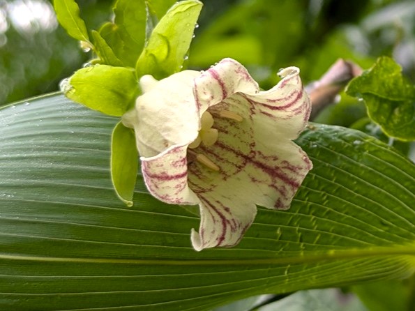 色違いのツルニンジンが、笹薮に隠れてひっそりと蕾を開き始めていました。