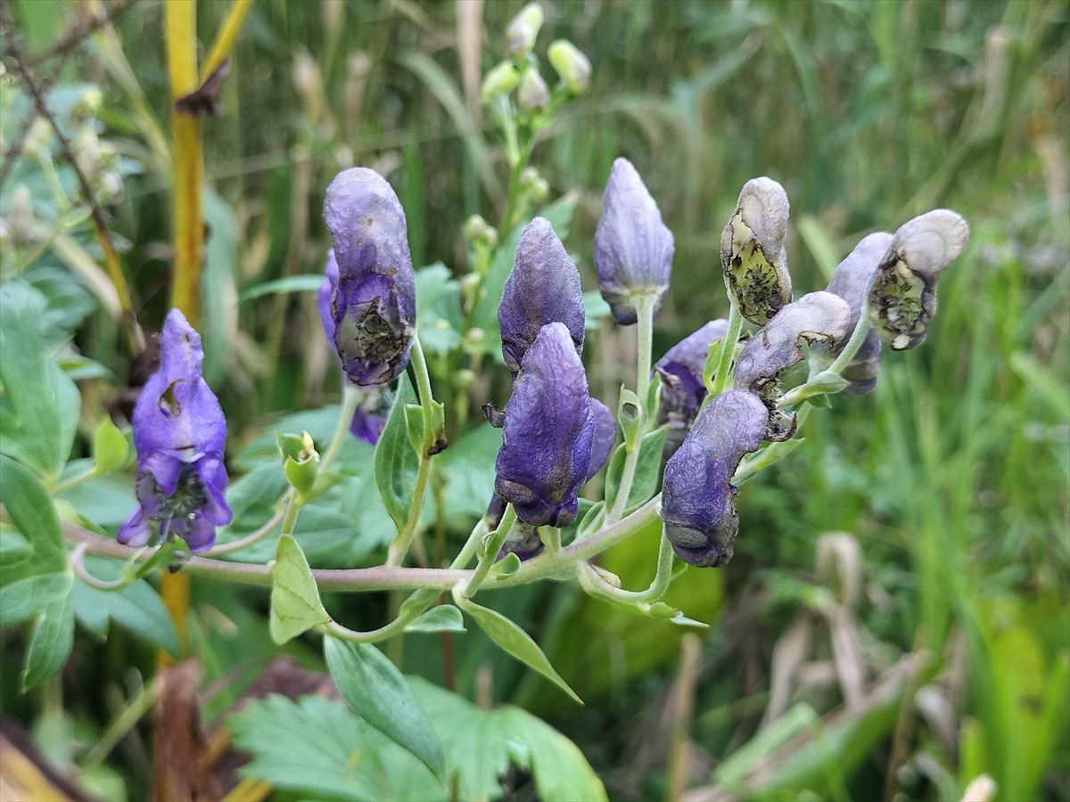 日本三大毒草のひとつとして有名なトリカブトです。あとの2つは、ドクウツギとドクゼリです。きれいなお花ですが、猛毒なので触れないようにお気をつけください。