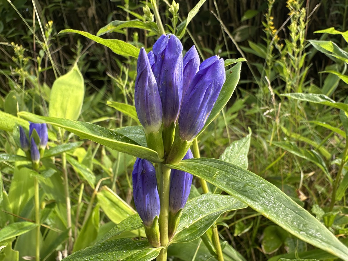 ビジターセンター付近では、オヤマリンドウの花が見られるようになりました。青紫色の落ち着いた花の色が初秋の雰囲気を漂わせています。