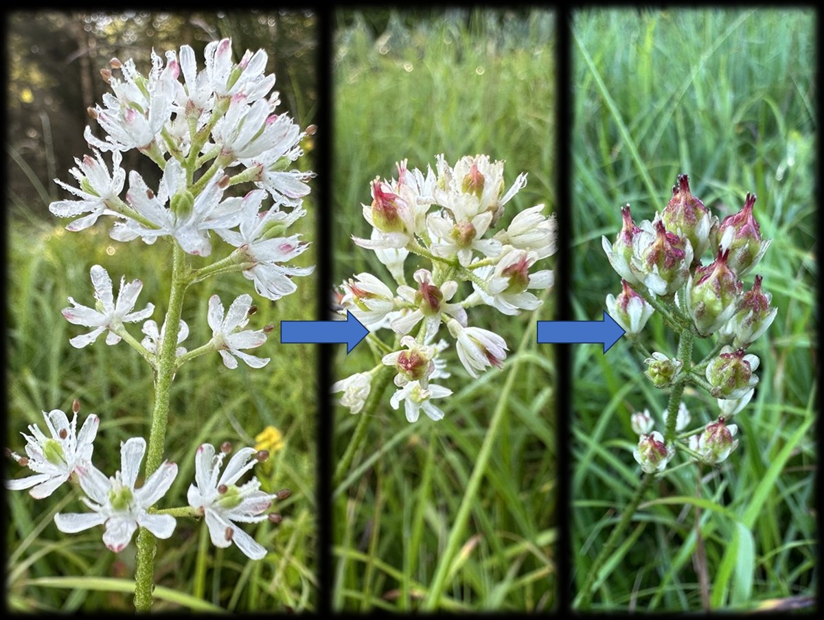 三本カラマツ付近のイワショウブが見頃を迎え、青々とした湿原に白く点々と咲く姿が愛らしいです。花期が終わると赤みを帯び、やがて赤い実を実らせます。花から実へ移り変わっていく経過を観察することができます。