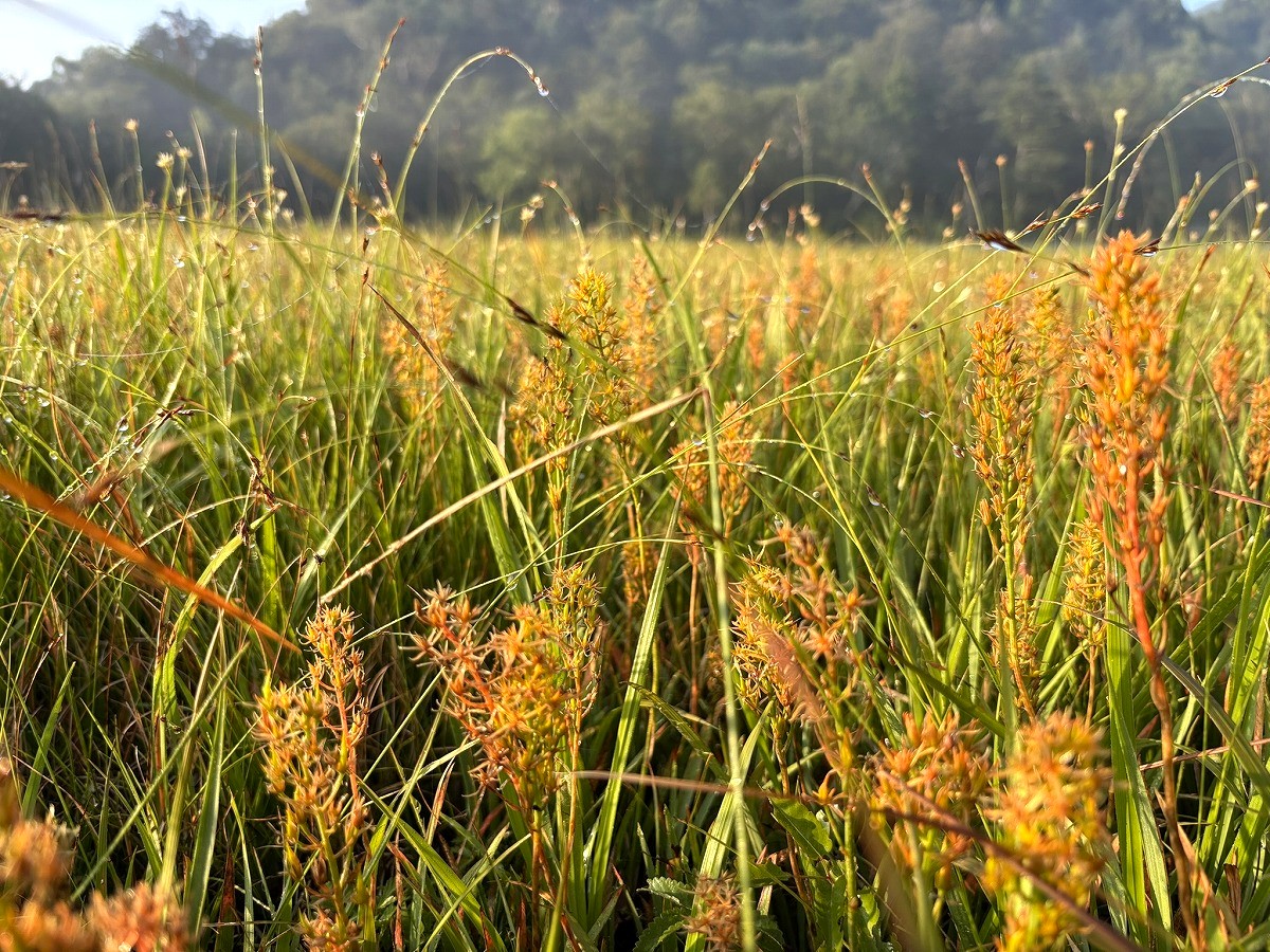 黄色い星形の花を咲かせていたキンコウカ。今は、実になりオレンジ色になっています。尾瀬の草もみじを彩る、大切な存在です。