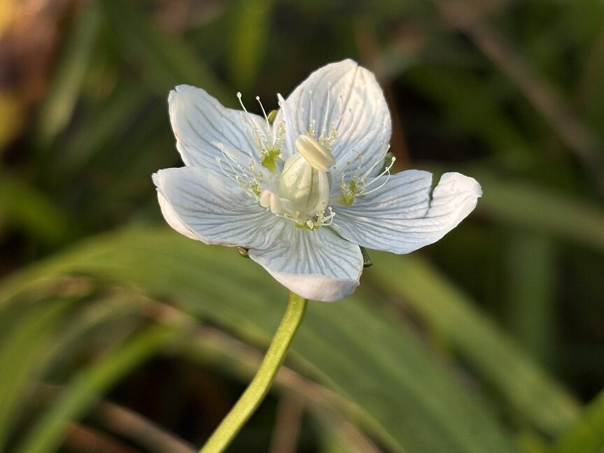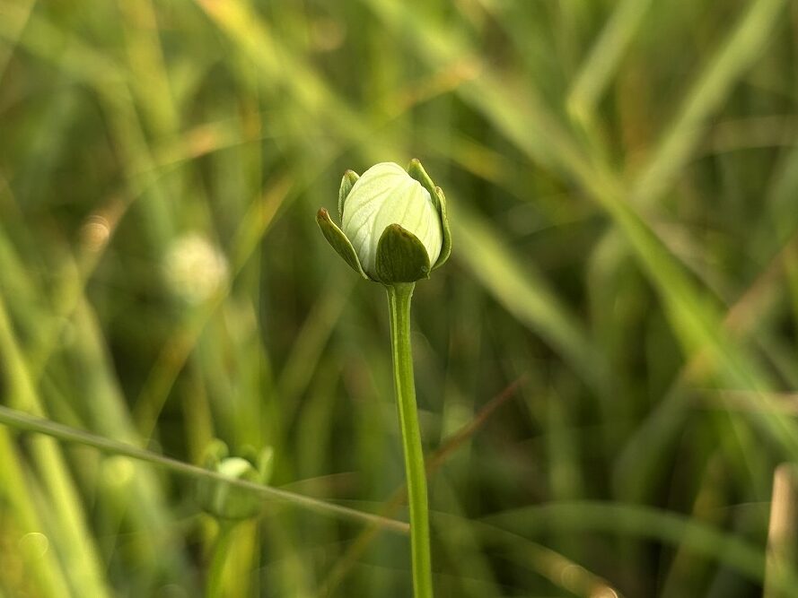至仏山ではだいぶ前から咲いていましたが、研究見本園でもウメバチソウが咲き始めました。花の大きさは2~3cm、草丈20~30cmほどです。つぼみはキュッと閉じたような球形をしています。