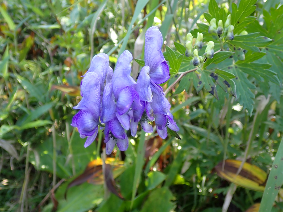 独特の存在感はこちらのオクトリカブトにもあります。花弁のように見えますが見える部分はほとんど萼片で、本来の花弁は萼片に隠れて僅かに見える程度です。