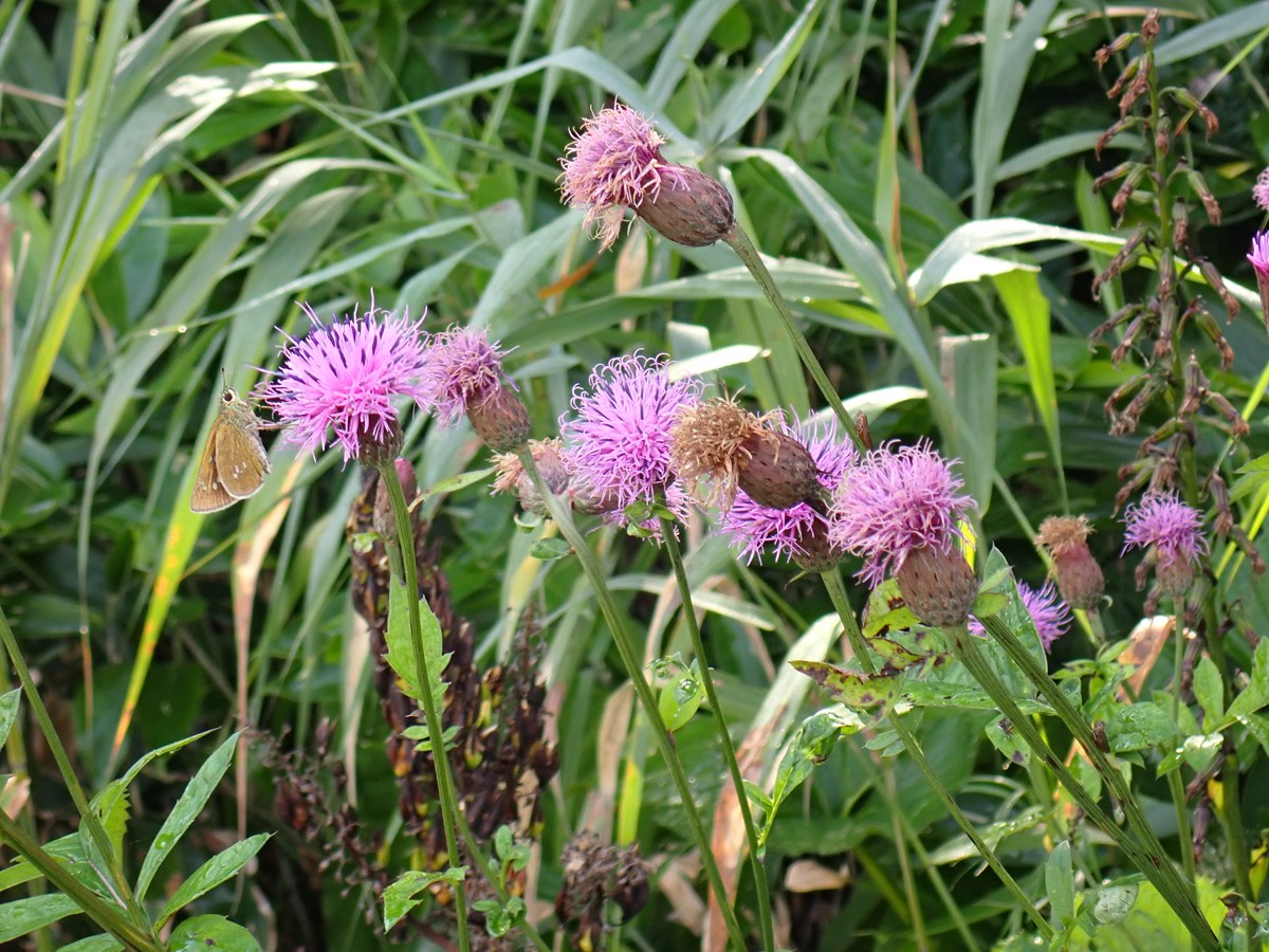 アザミによく似ていますが、葉にトゲはありません。第二大江橋付近に群生しています。