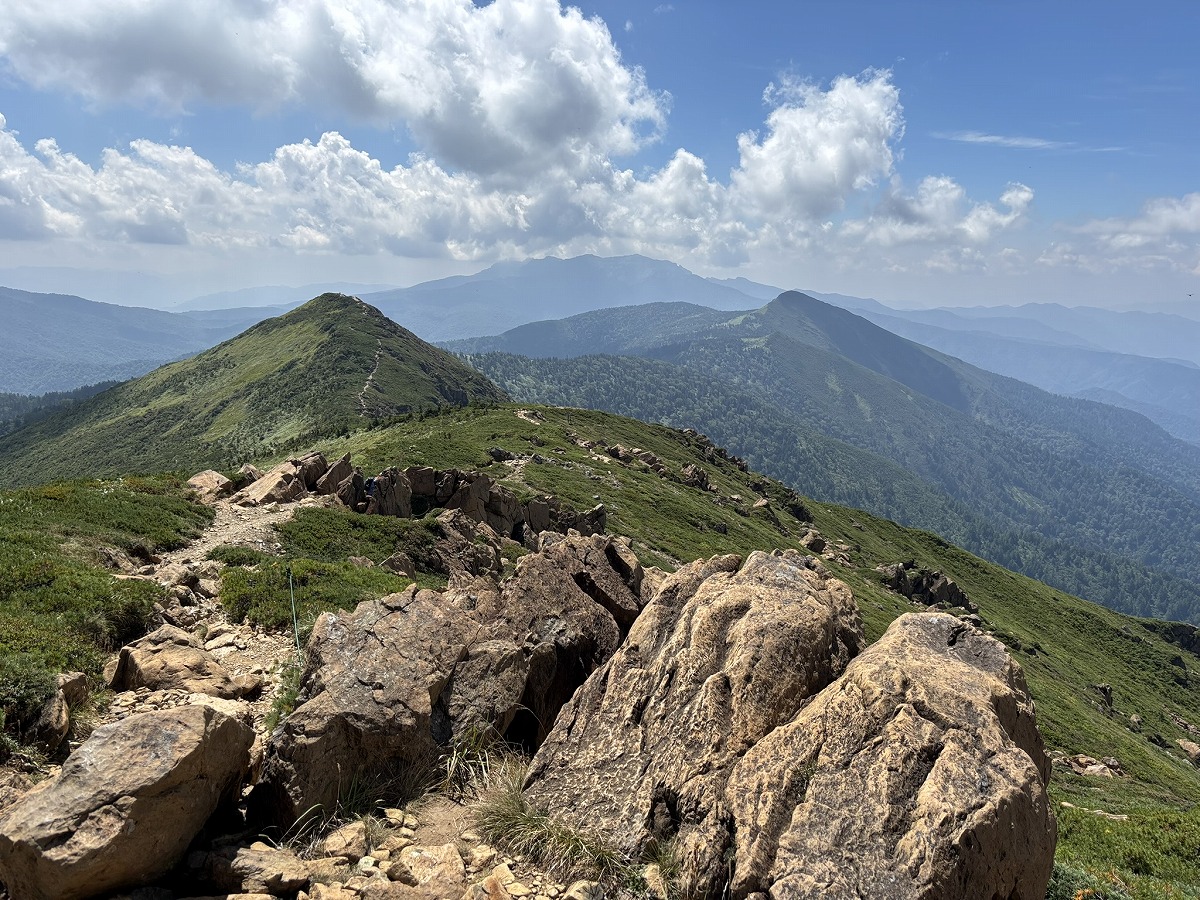 至仏山ではこの日、真夏とは違う爽やかな風が吹き、抜けるような青空が広がっていました。そして、少し秋めいてきた空気や、この時期ならではの植物を味わうことができます。登山の際は、十分な装備としっかりとした計画のもと、安全にお楽しみください。