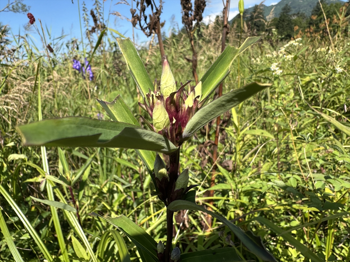 ついにお花リレーの最終走者、エゾリンドウの蕾を大江湿原で発見したぞ!と喜び、開花していく様子を観察していこうと意気込んでいたのもつかの間、今朝の強い雨で流され、他の植物の下敷きになってしまったのか、一昨日咲いていた場所で再度見つけることができませんでした。尾瀬の自然の厳しさと残酷さを改めて感じました。