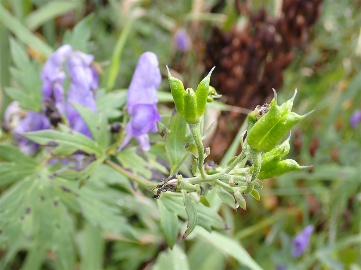 オクトリカブトの花は大江湿原に数多く見られますが、徐々に実をつけ始めています。来年に向けて、実りの準備を始めているようです。