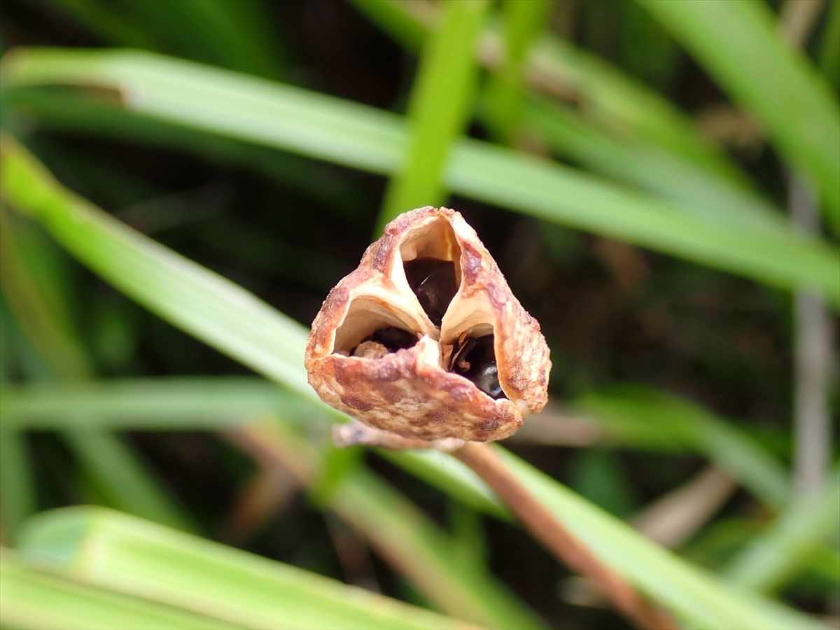 ニッコウキスゲは種は完全に成熟し、中の黒い種が覗き込めるようになっています。周りに散ることで、より多くの芽吹きを期待します。