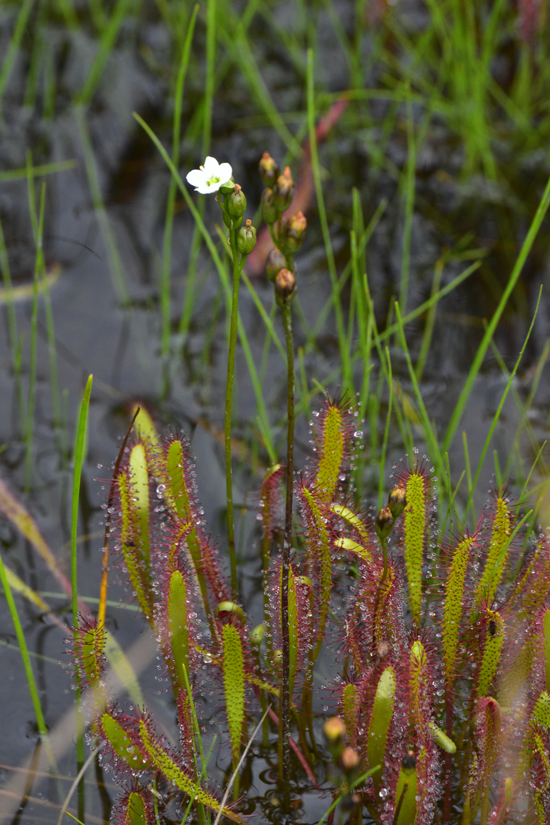 最後にもう一つ、「コケ」と名前がついているけれど、実はコケの仲間ではない植物をご紹介します。それがモウセンゴケとナガバノモウセンゴケ です。
