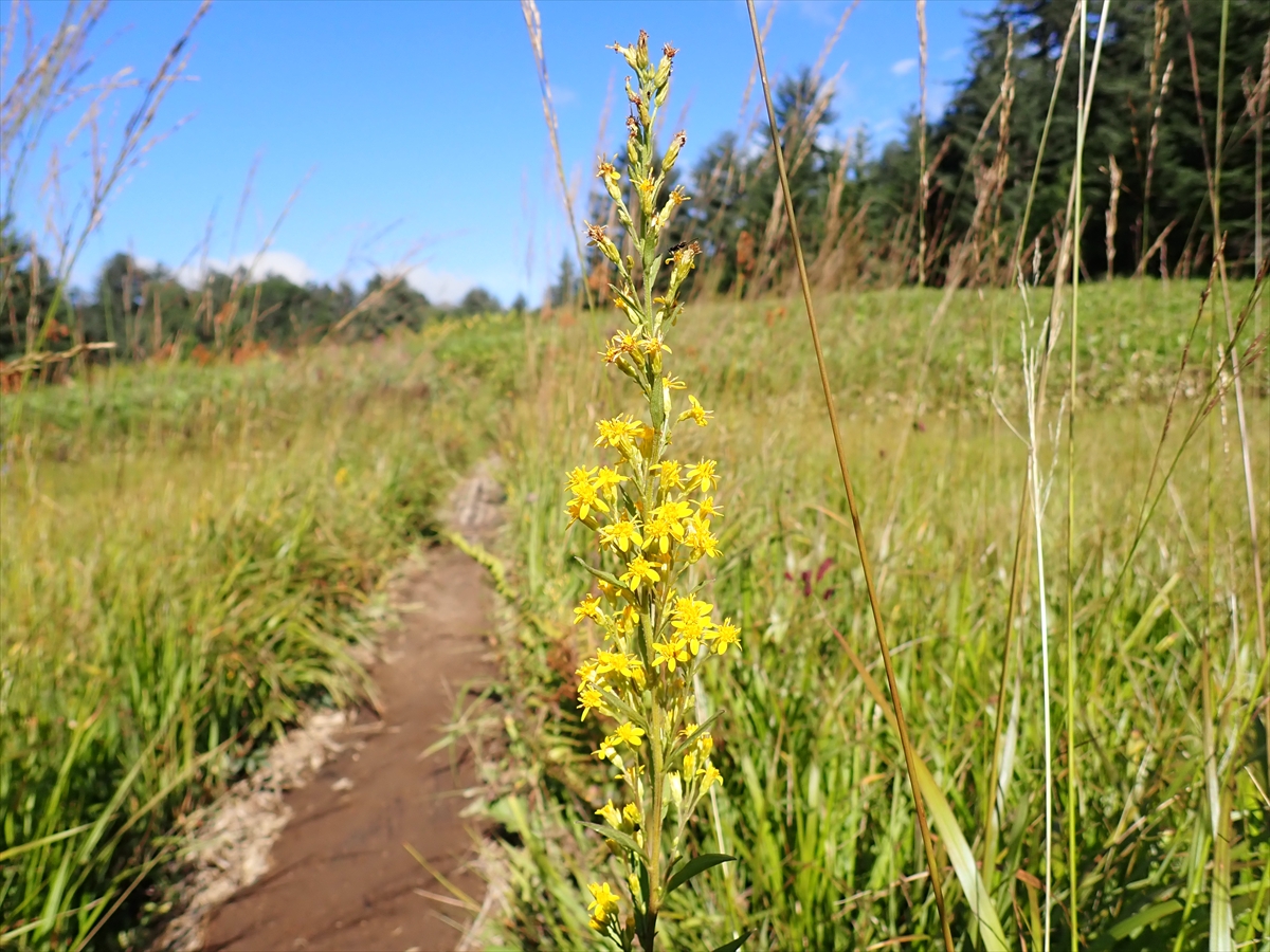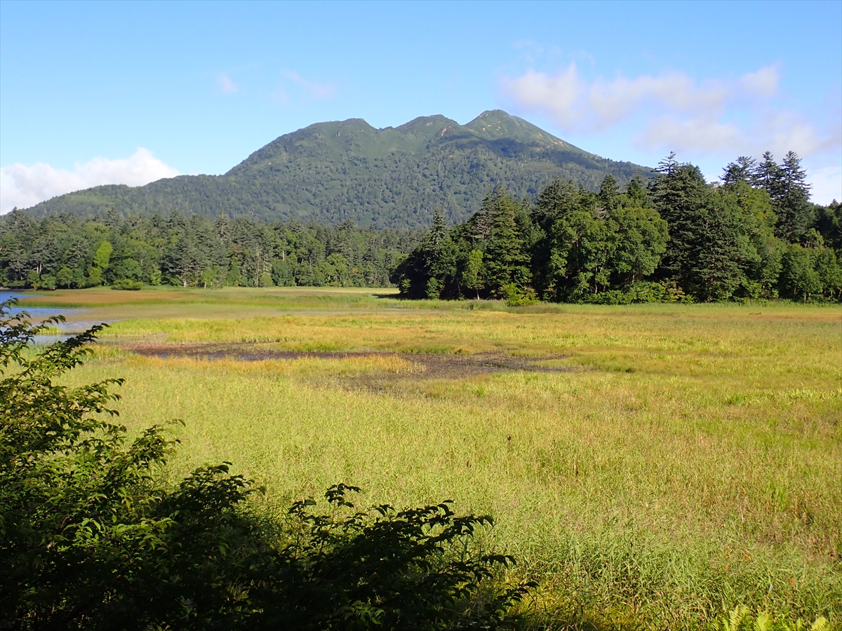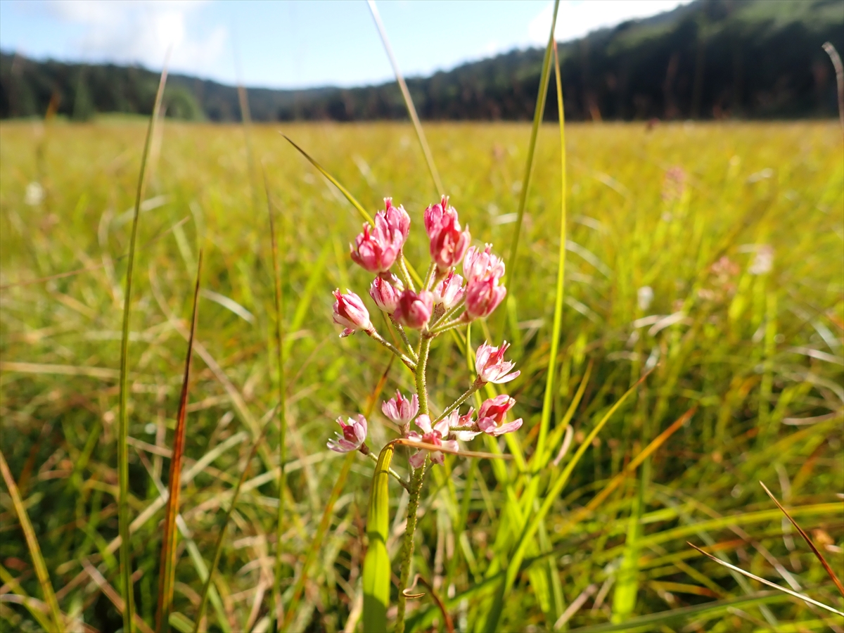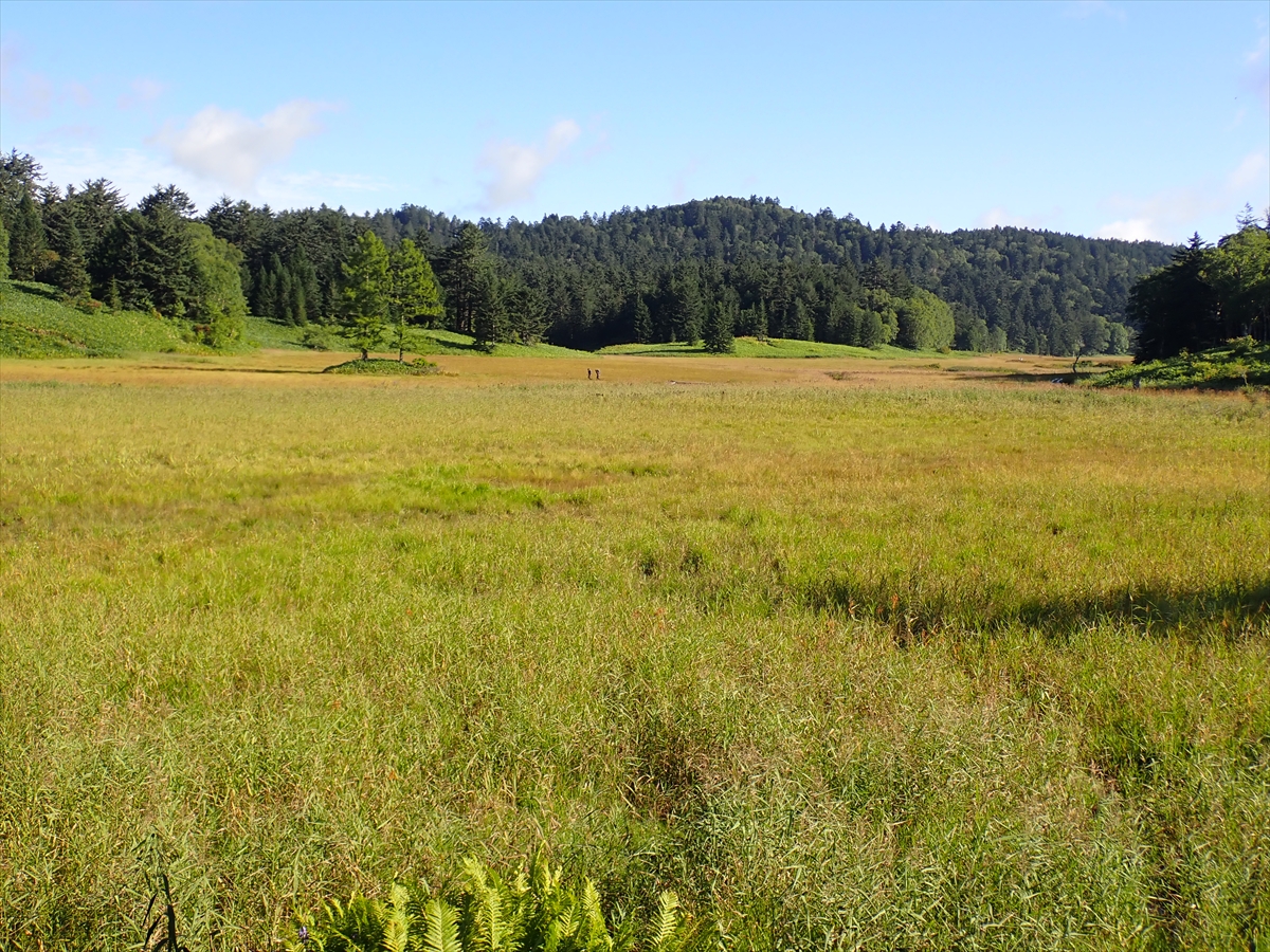 大江湿原は夏から秋の色へと移り変わり始めています。晴れた日は風にたなびいて、輝くように見えます。
