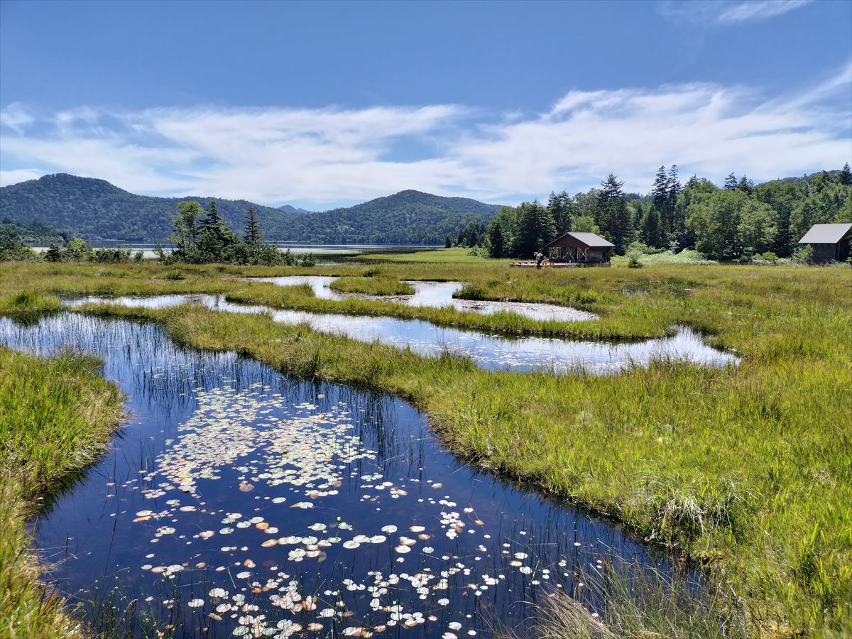 尾瀬沼の西側にある沼尻。ビジターセンターから約1時間ほどで沼尻に着きます。沼尻休憩所からナデッ窪のほうへ木道を歩いていくと、すぐに写真のような池塘があります。晴れた日の日中ならば、ヒツジグサの白いきれいな花を見ることができると思います。