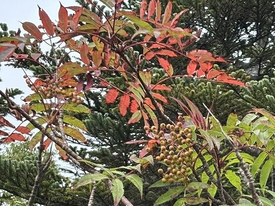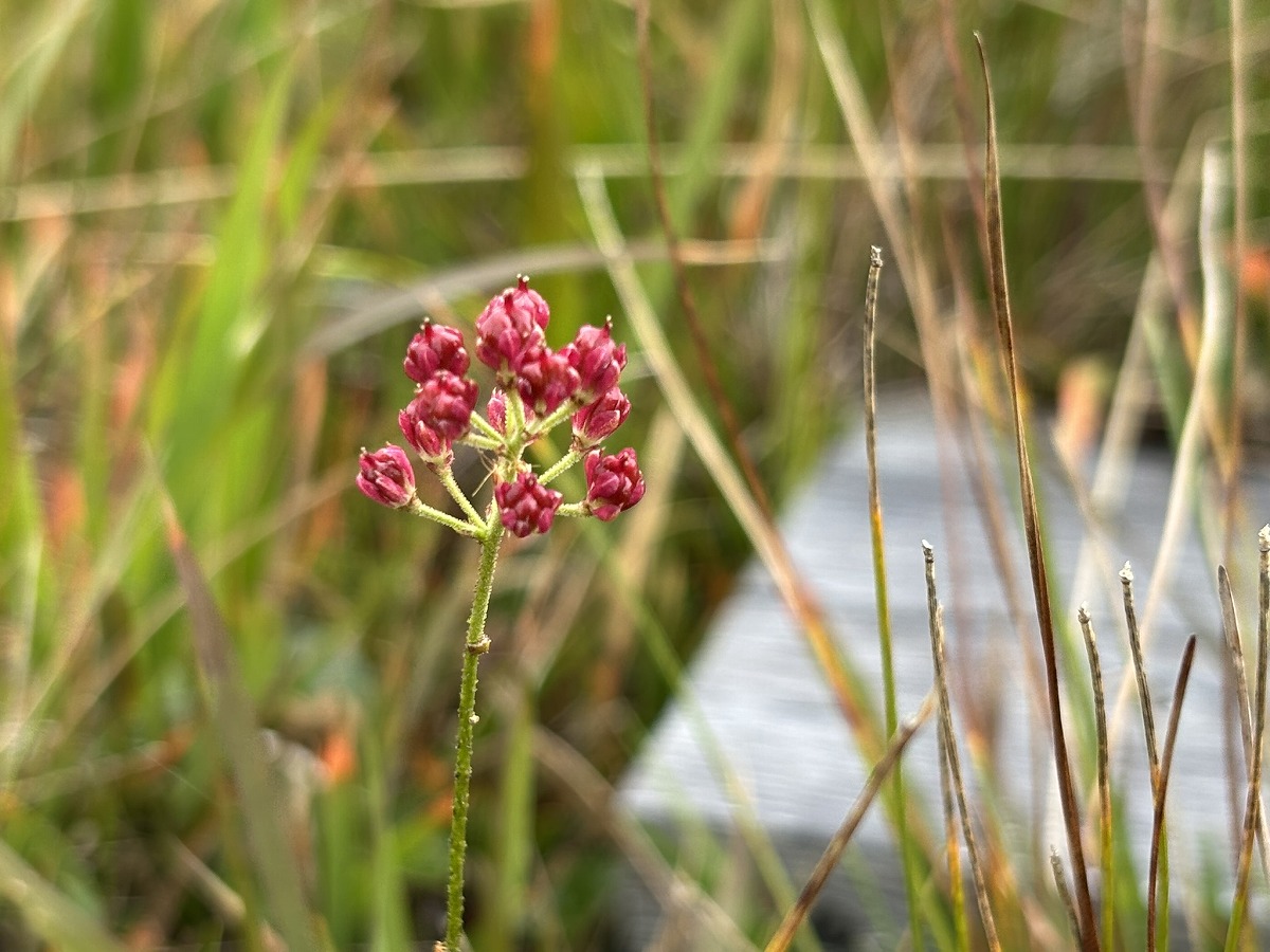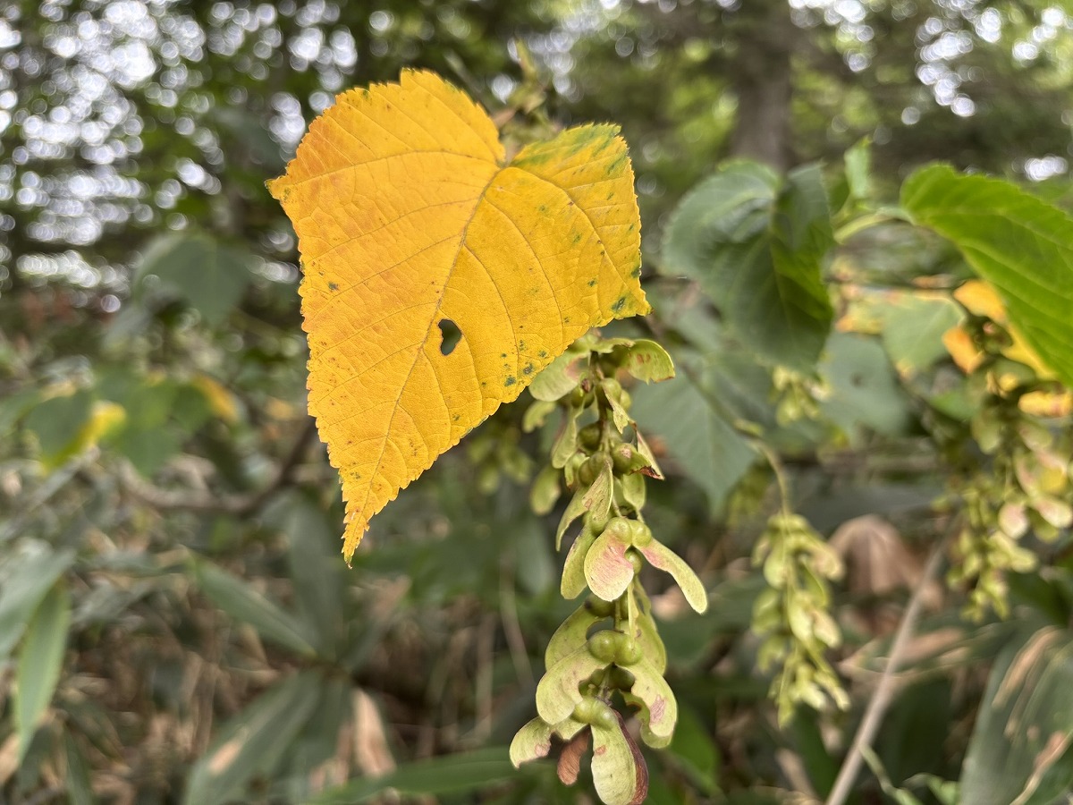 湿原ではイワショウブが実を結び始め、秋を感じさせる花が咲いています。林内の木々は全体的にまだ緑色優勢ですが、色づき始めた葉や実も見られました。