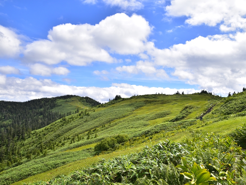 登山道中のブナの森や稜線の湿原の緑は盛夏の頃に比べると少しずつ色が変化し、もうまもなく緑の世界も見納めとなりそうです。