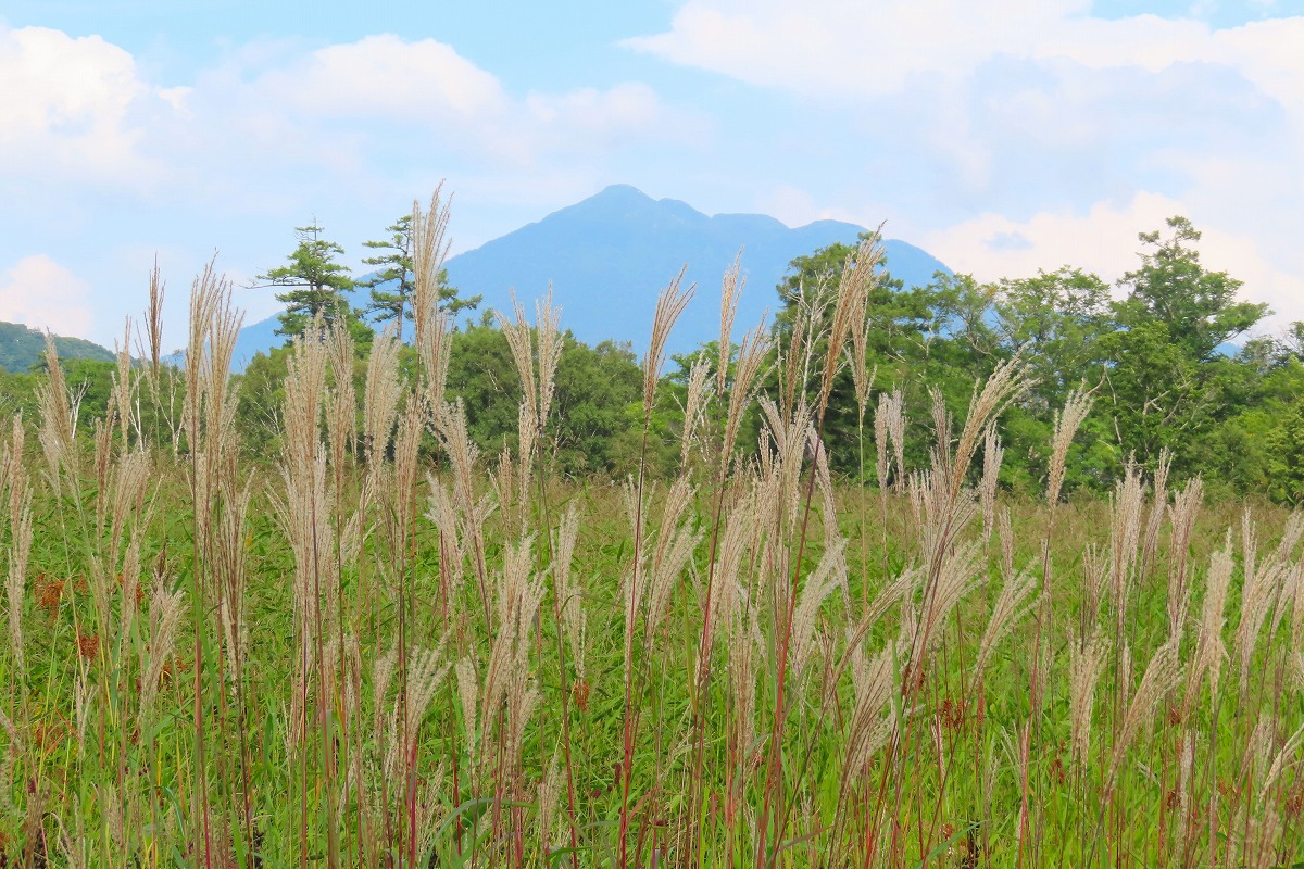 ススキの穂が揺れる彼方には燧ヶ岳が望め、湿原もだんだんと秋の装いをまとってきました。