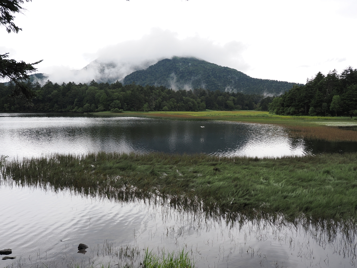 昨夕の雷雨から明けて、今日は朝から曇り空が続いています。時々青空も垣間見えますが、燧ヶ岳上部はずっと雲の中です。