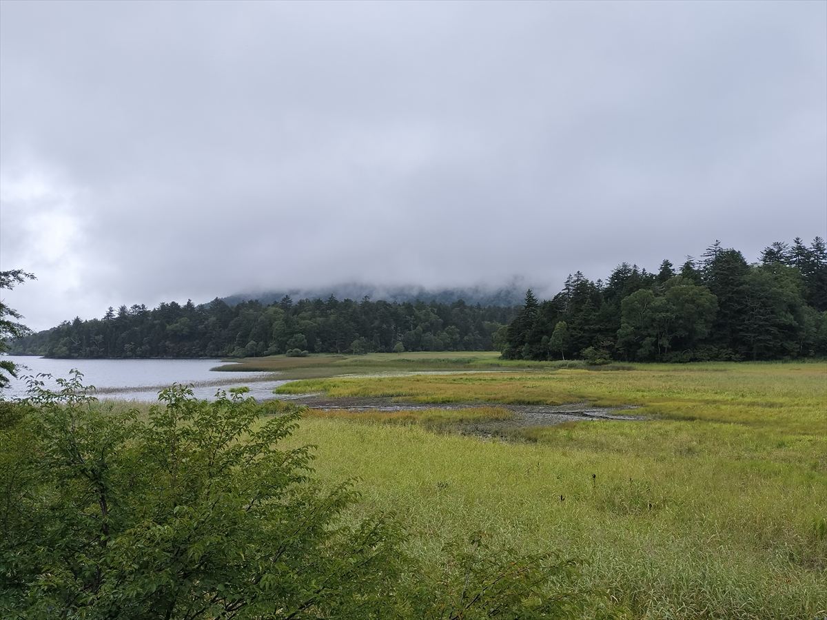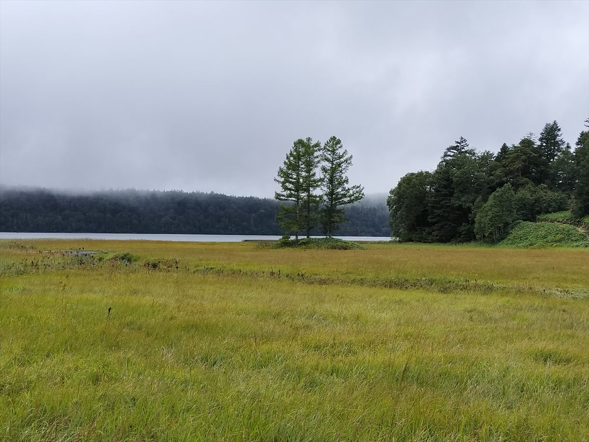 尾瀬沼全体が雲に覆われて、目の前にあるはずの燧ヶ岳も、今日はその雄姿を見ることができません。