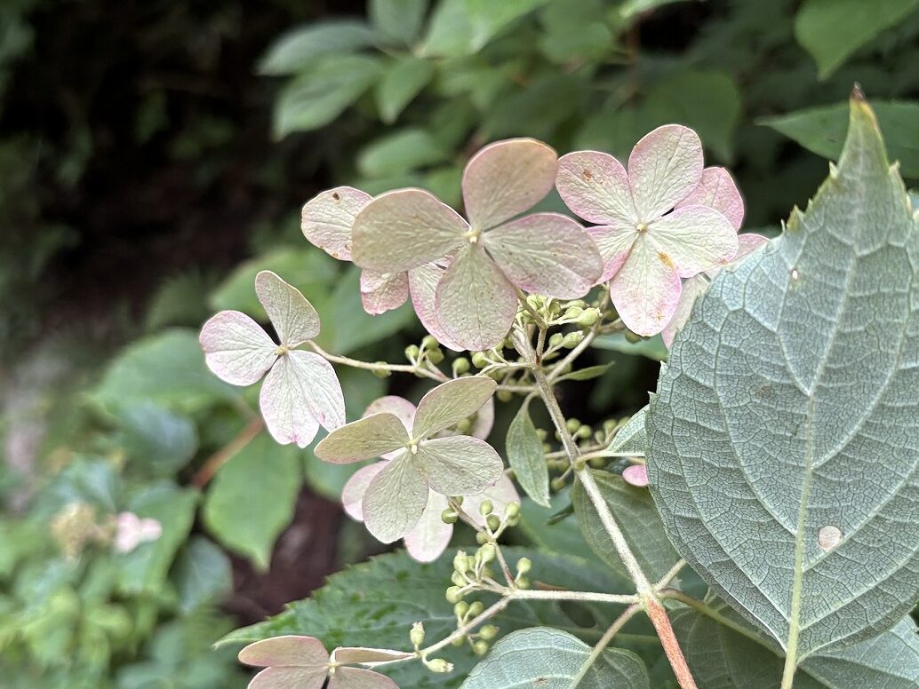 咲きたては白色だったノリウツギの花が、ピンク色に染まっています。よく見ると、ピンク色になっているのは裏側で、表側は白っぽい色をしていました。