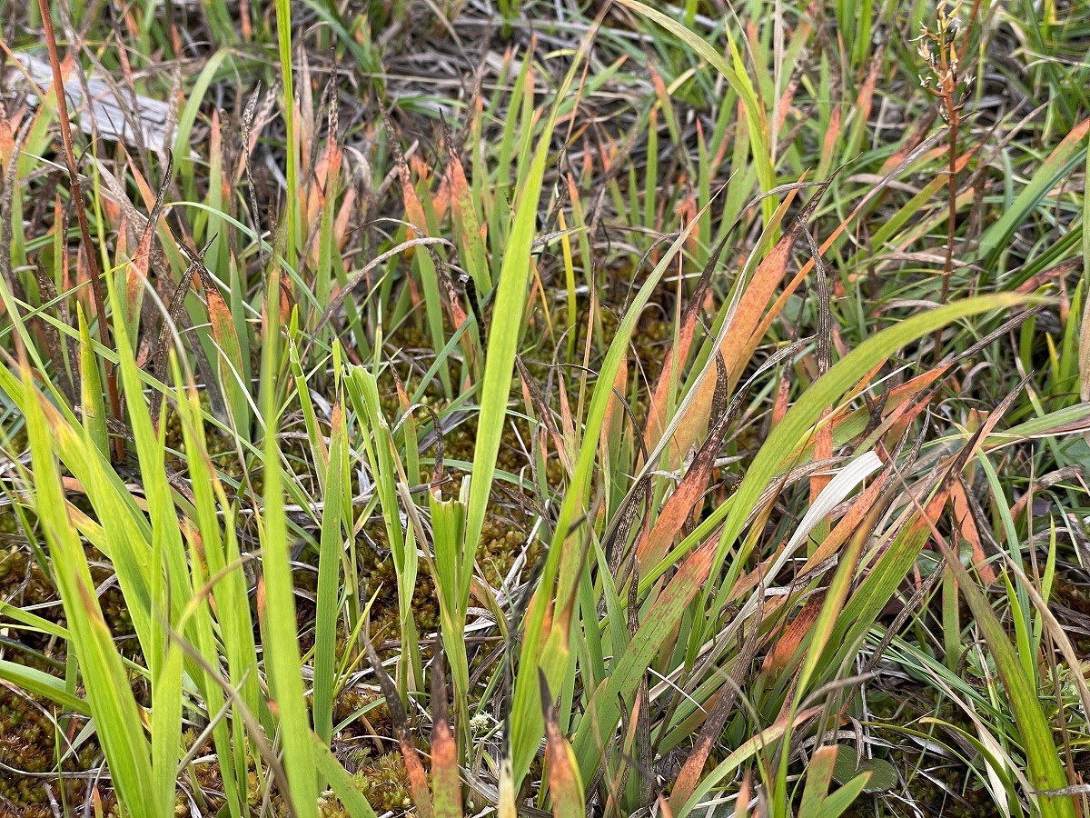 アヤメ平の名前は、キンコウカの葉をアヤメと間違えて名付けてしまったと言われています。それほど、たくさんキンコウカが生育している場所で、現在その葉がオレンジ色に色づき、草紅葉に鮮やかな色を添えています。