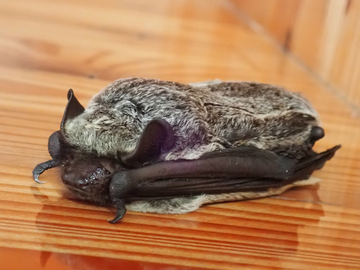 上の写真は「ヒメホオヒゲコウモリ」下の写真は「ヒナコウモリ」と思われます。