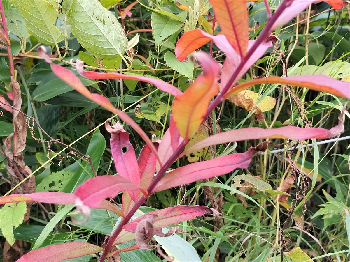 ヤナギランが綿毛を飛ばし、葉も緑色から赤色に変化してきました。