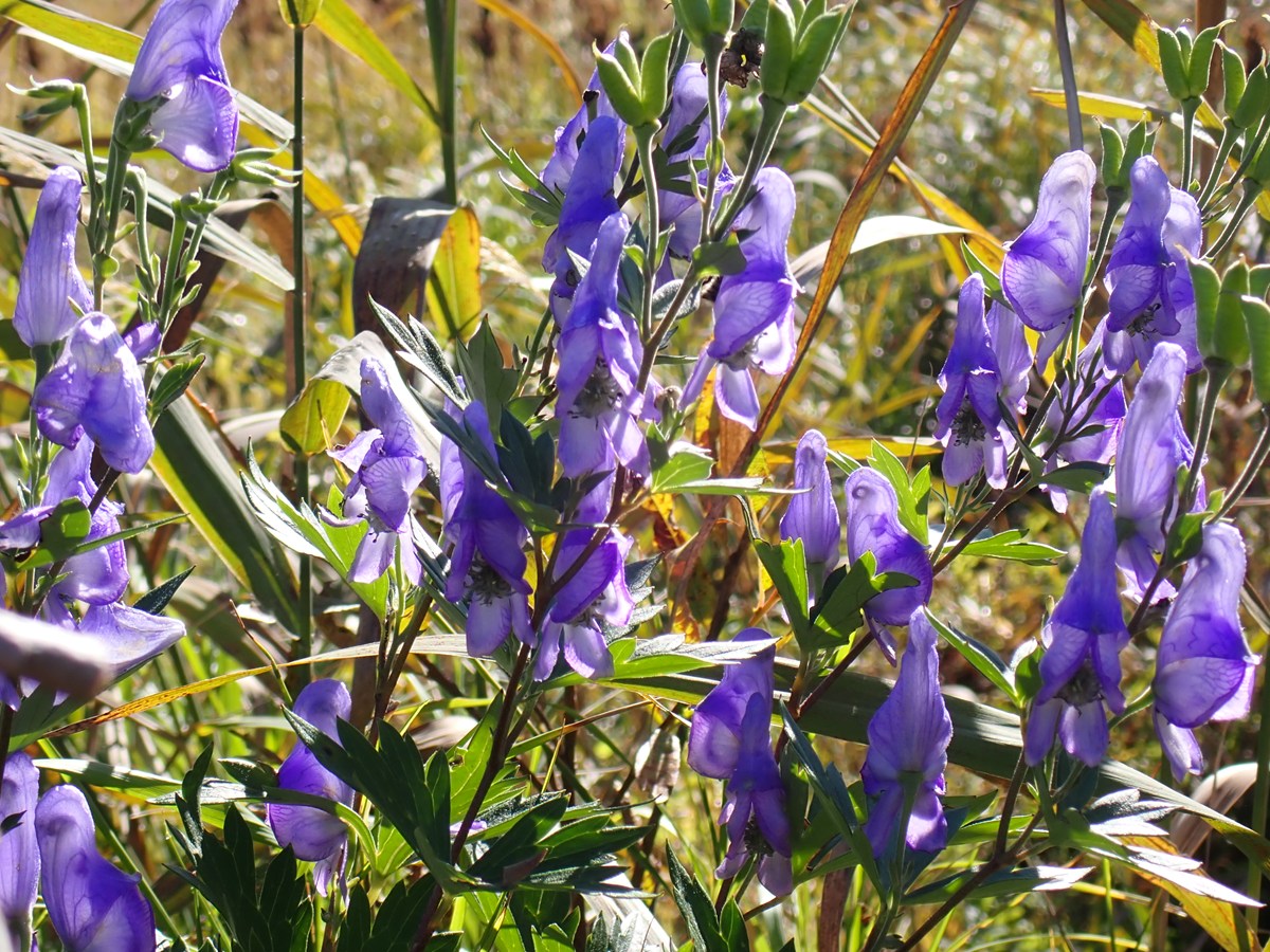 スゲやカヤツリグサの類が遠景として風に揺れ、種になったミヤマアキノキリンソウやミヤマワレモコウ、イワショウブ、紅葉したレンゲツツジなどが彩を添えます。