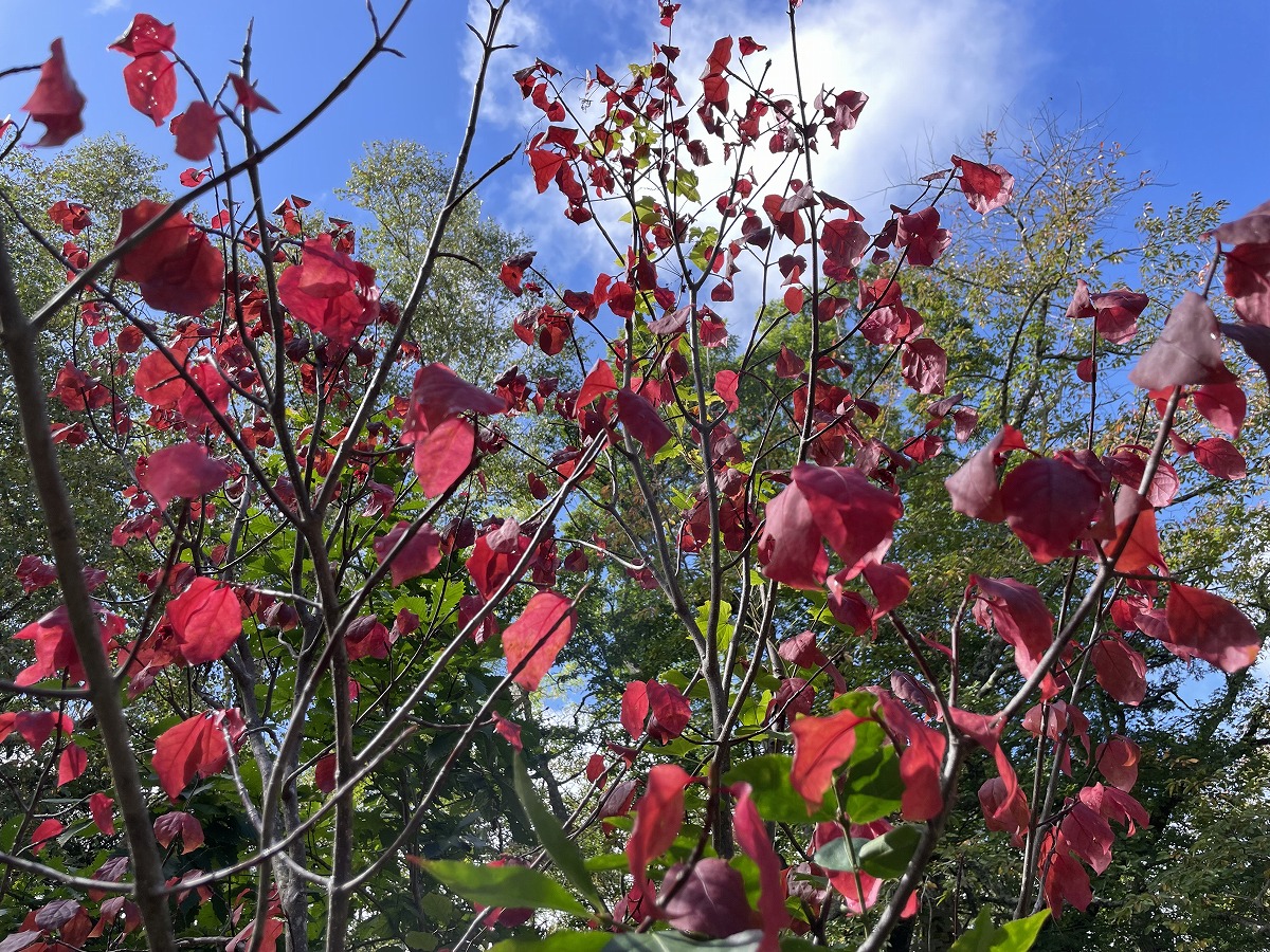 湿原の草もみじが鮮やかに目に映る季節となりました。山の木々をよく見ると、わずかに色づきが始まってきています。山の紅葉が鮮やかになるのは例年10月中旬ごろからになります。