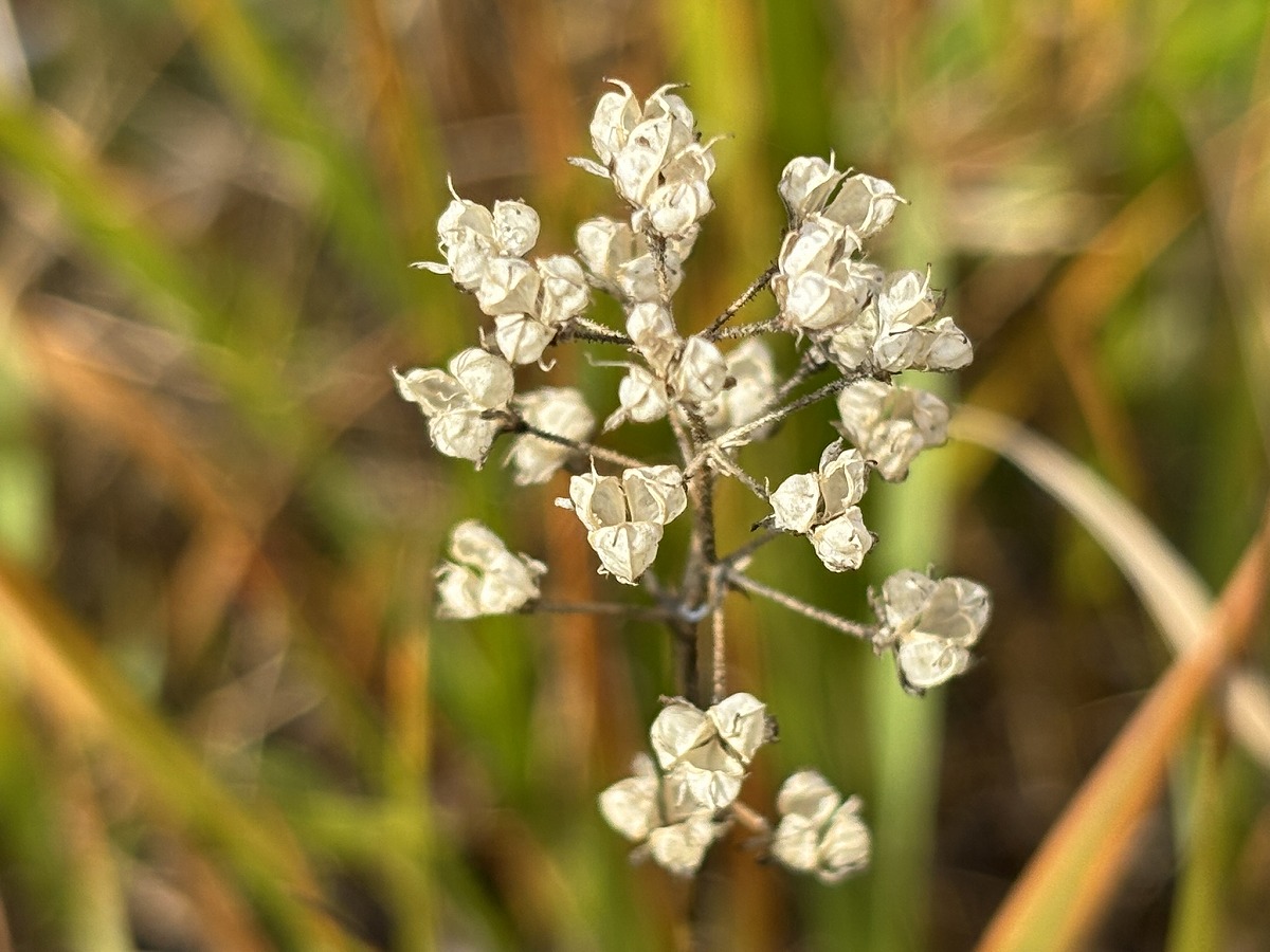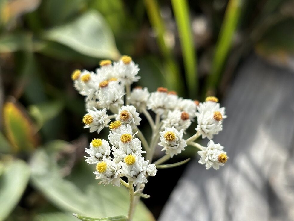 他にも、白い植物が目に留まりました。黄色い花を咲かせていたミヤマアキノキリンソウは綿毛になり、イワショウブは白い部分の中身が空っぽでした。中の種が出てしまったようです。