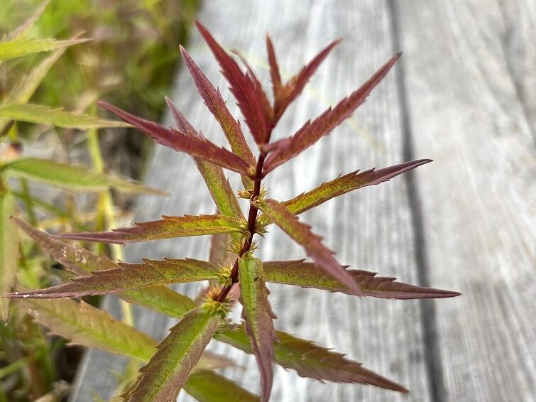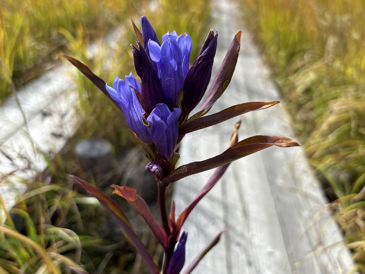 緑色だったエゾリンドウの葉は黒紫色に、ヒメシロネの葉は緑から赤へのグラデーションになっていました。一つの植物の中にも、さまざまな色があります。