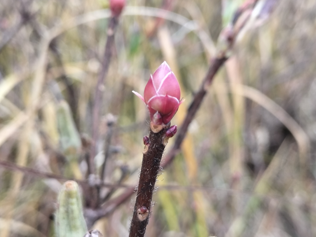 レンゲツツジは、赤く紅葉していますが、枝の先を見ると、すでに来シーズンにむけての冬芽ができていました。