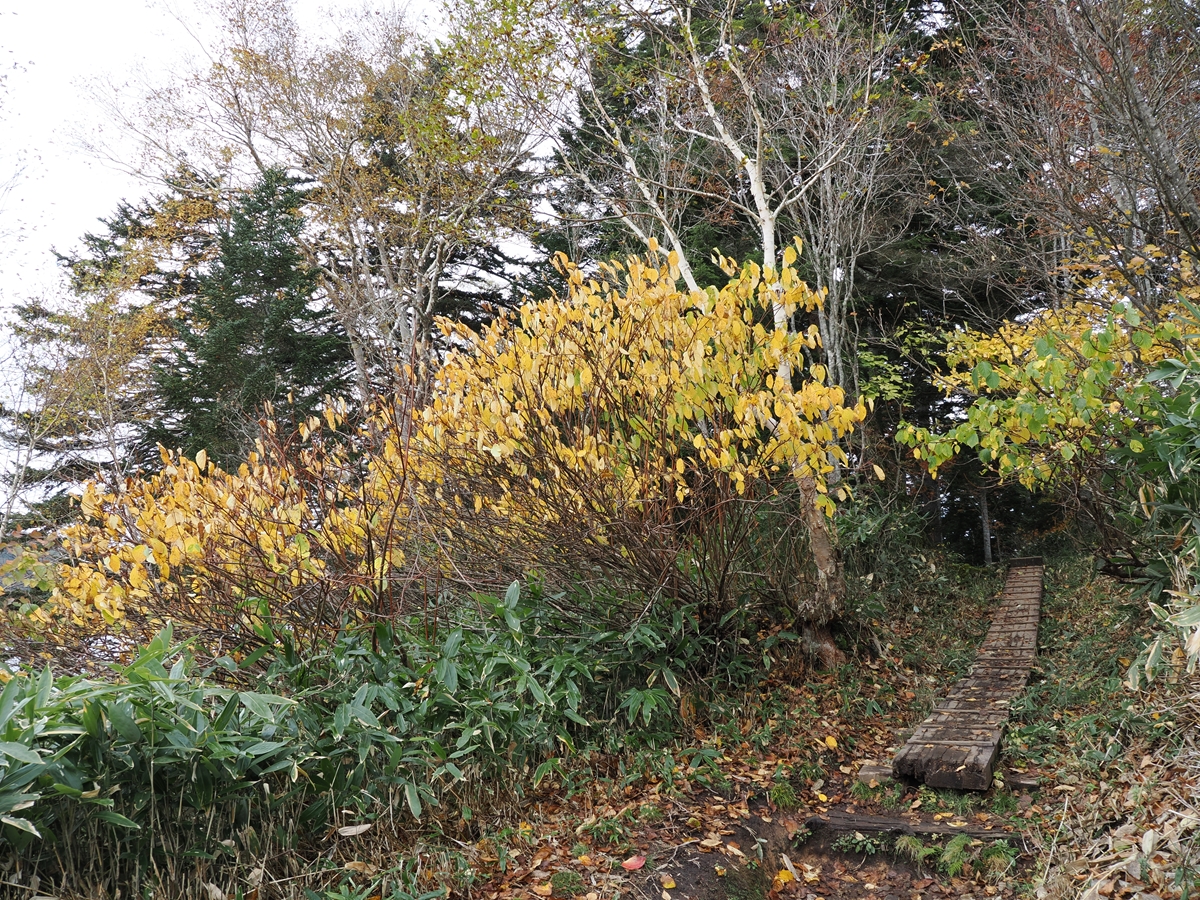 ビジターセンターで夜のスライドショーを見られた方は「尾瀬の木道にはカラマツ材が使われている」との説明を覚えていらっしゃるでしょうか。すると木道の上にカラマツの葉が落ちているのはカラマツの2形態(製材後&自然の姿)がそこで出会っているということで、ちょっと不思議な気分になりました。