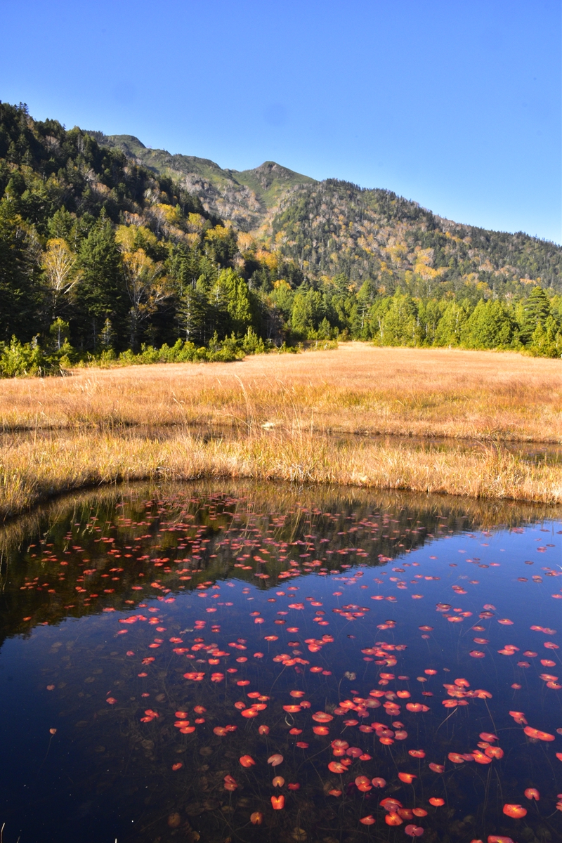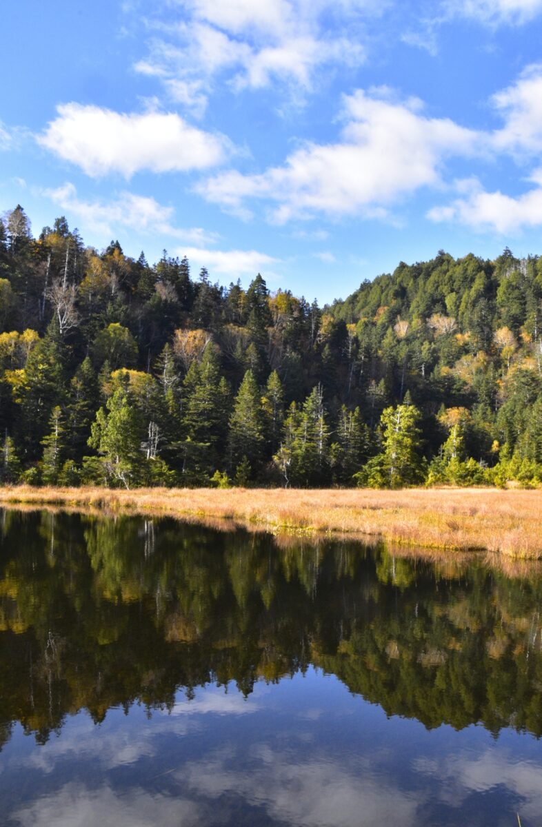 最後に秋空を映す池塘の風景をお送りします。草紅葉と紅葉の季節を過ぎると尾瀬もまもなくシーズンオフとなります。交通機関や山小屋の営業状況、公衆トイレの稼働状況などの最新情報を<2025年シーズンオフ関連情報 >で確認の上、お越しください。
