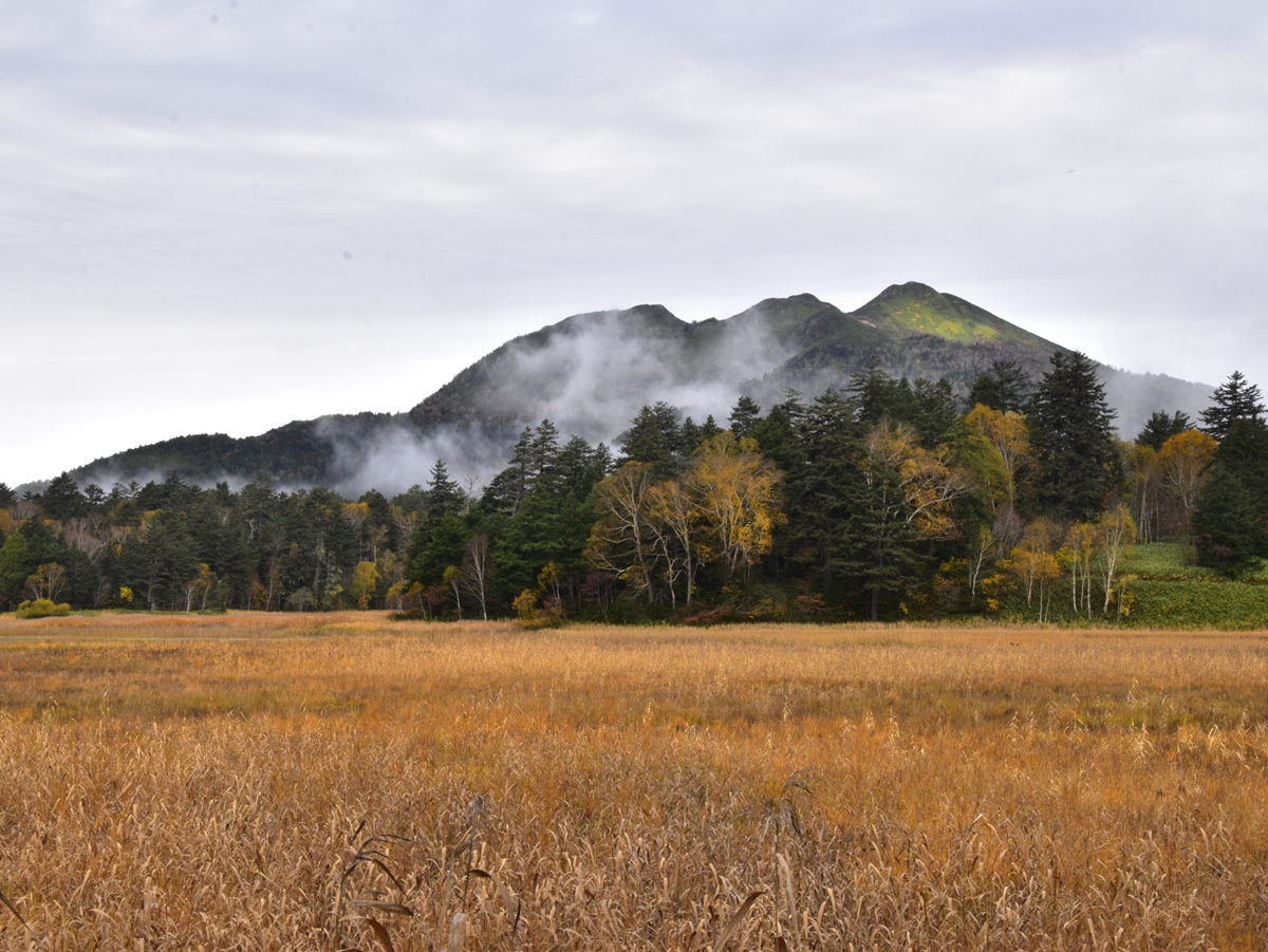 本日の尾瀬沼周辺は薄曇りで気温が下がりすぎることもなく、過ごしやすい朝を迎えました。日が昇ると少しずつ山霧も晴れて、燧ヶ岳が顔を覗かせてくれました。日中になると少しずつ青空も見え始め、うろこ雲と青空が見える秋らしい空模様となりました。