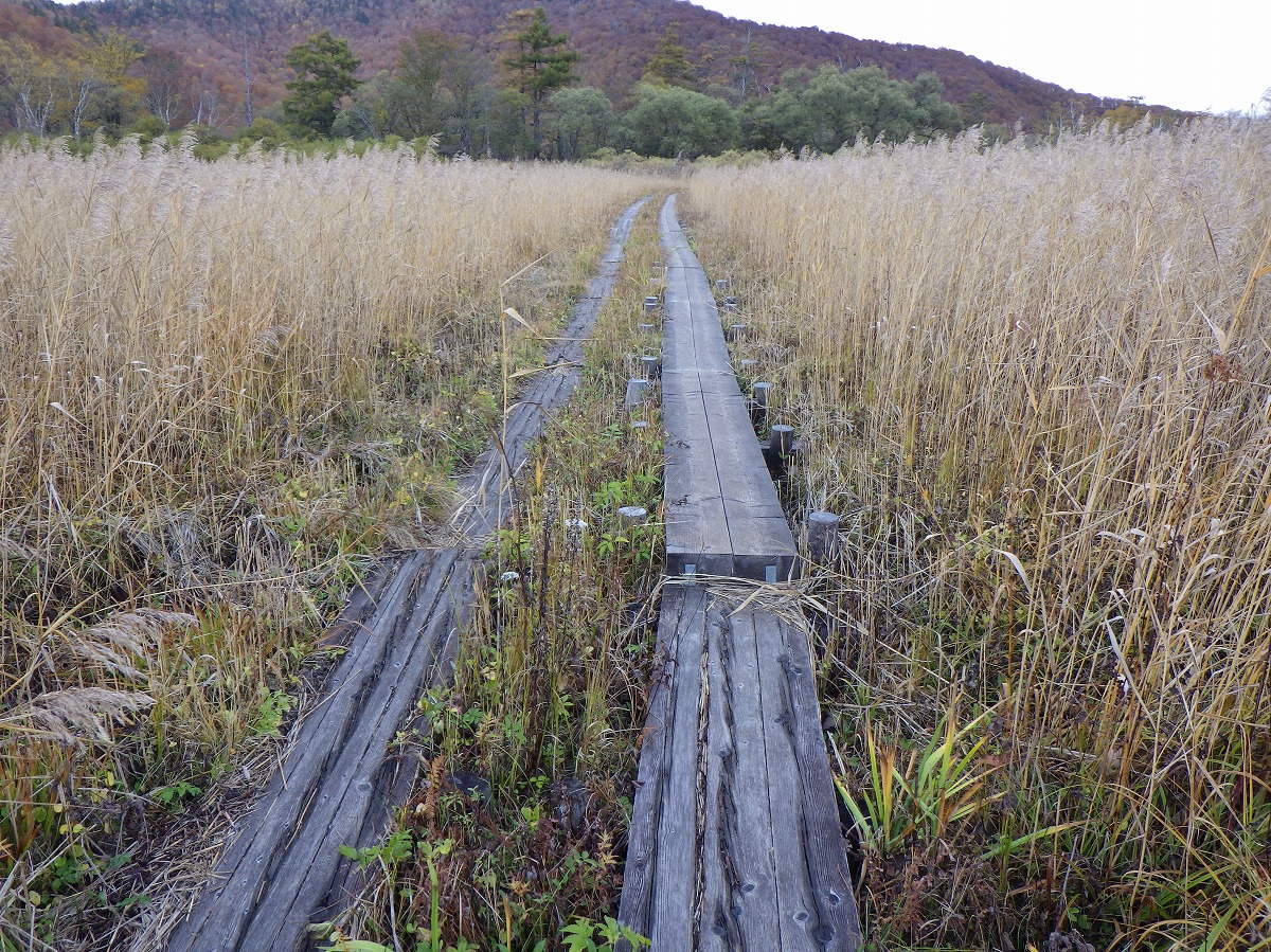 湿原では来年の準備が始まっています。高く伸びた葦のあいだを歩くのも風情があります。